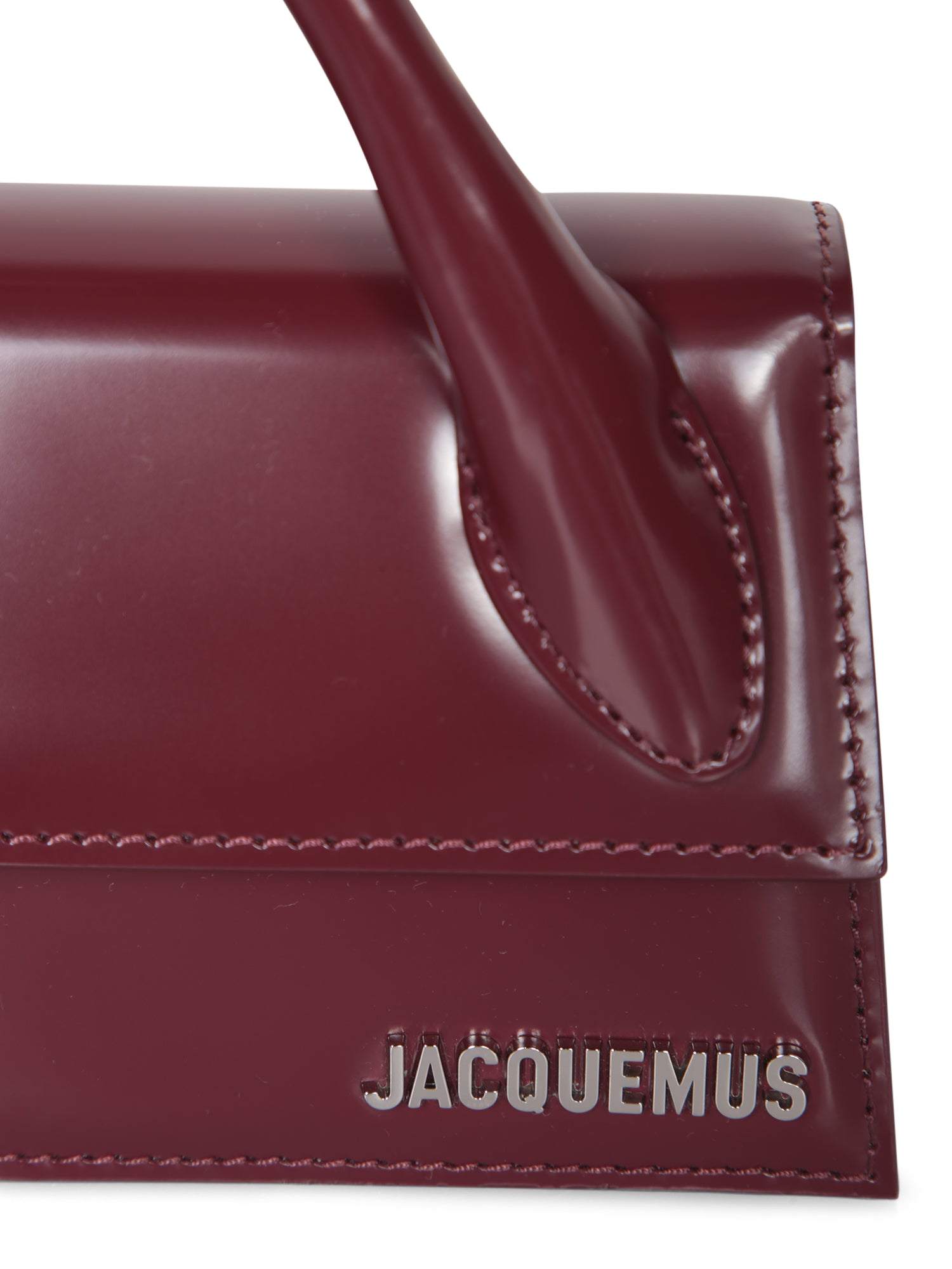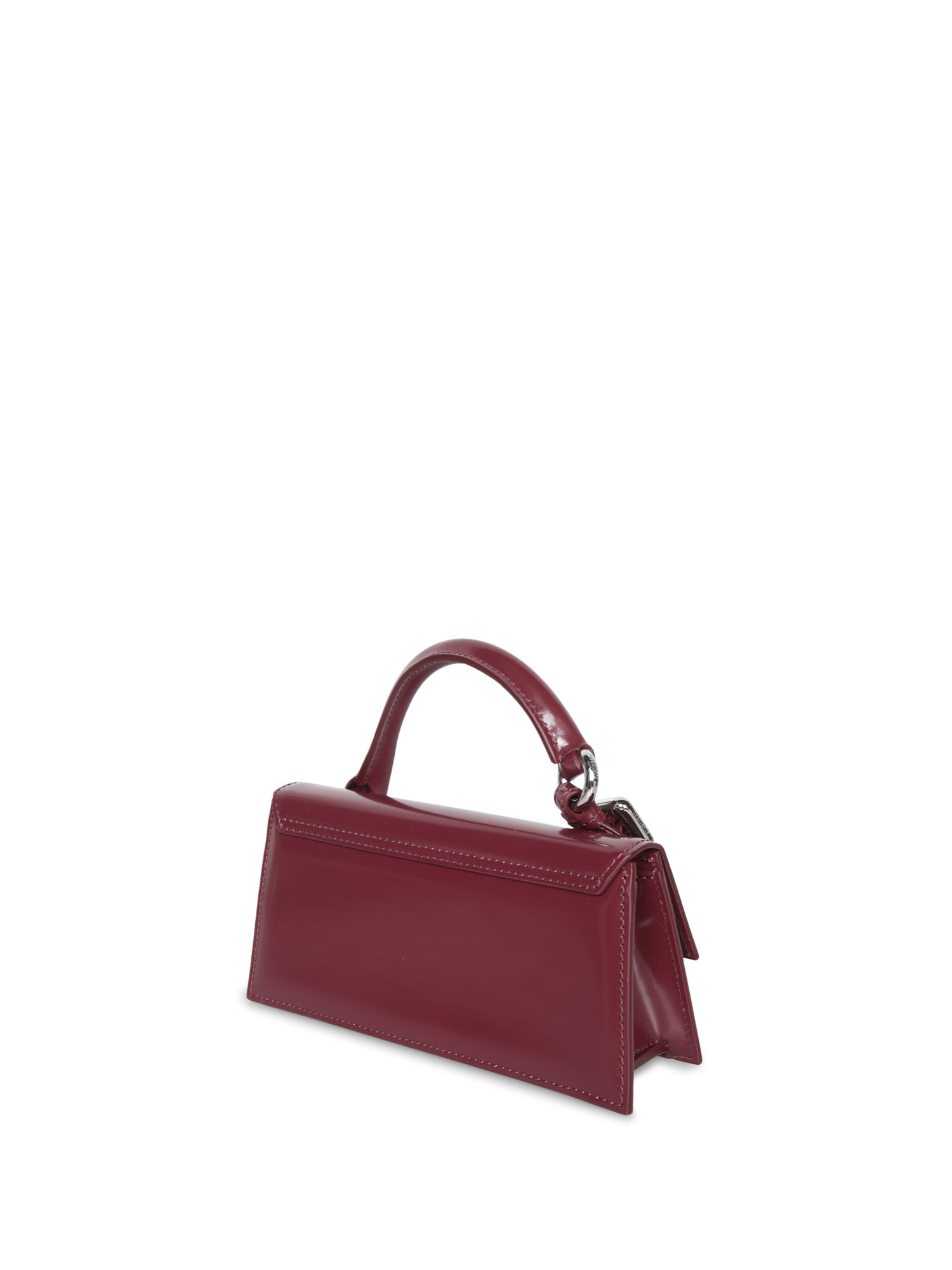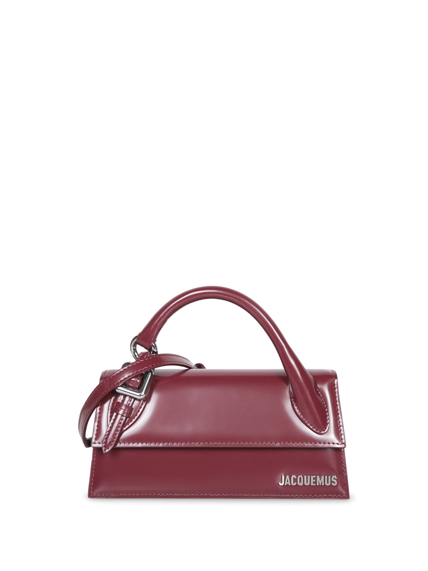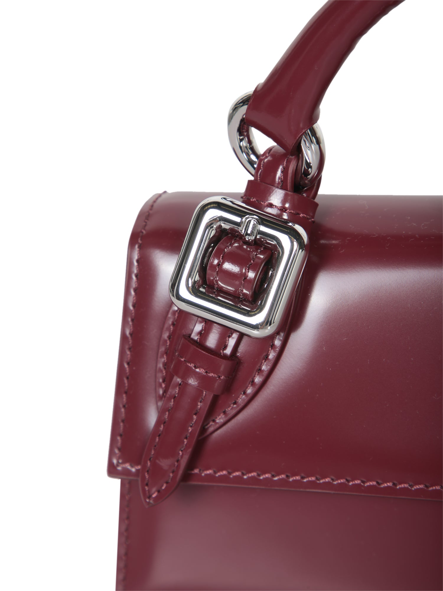 Crafted from smooth burgundy leather. Precise matching color stitching. Features a single handle and an adjustable, detachable strap.