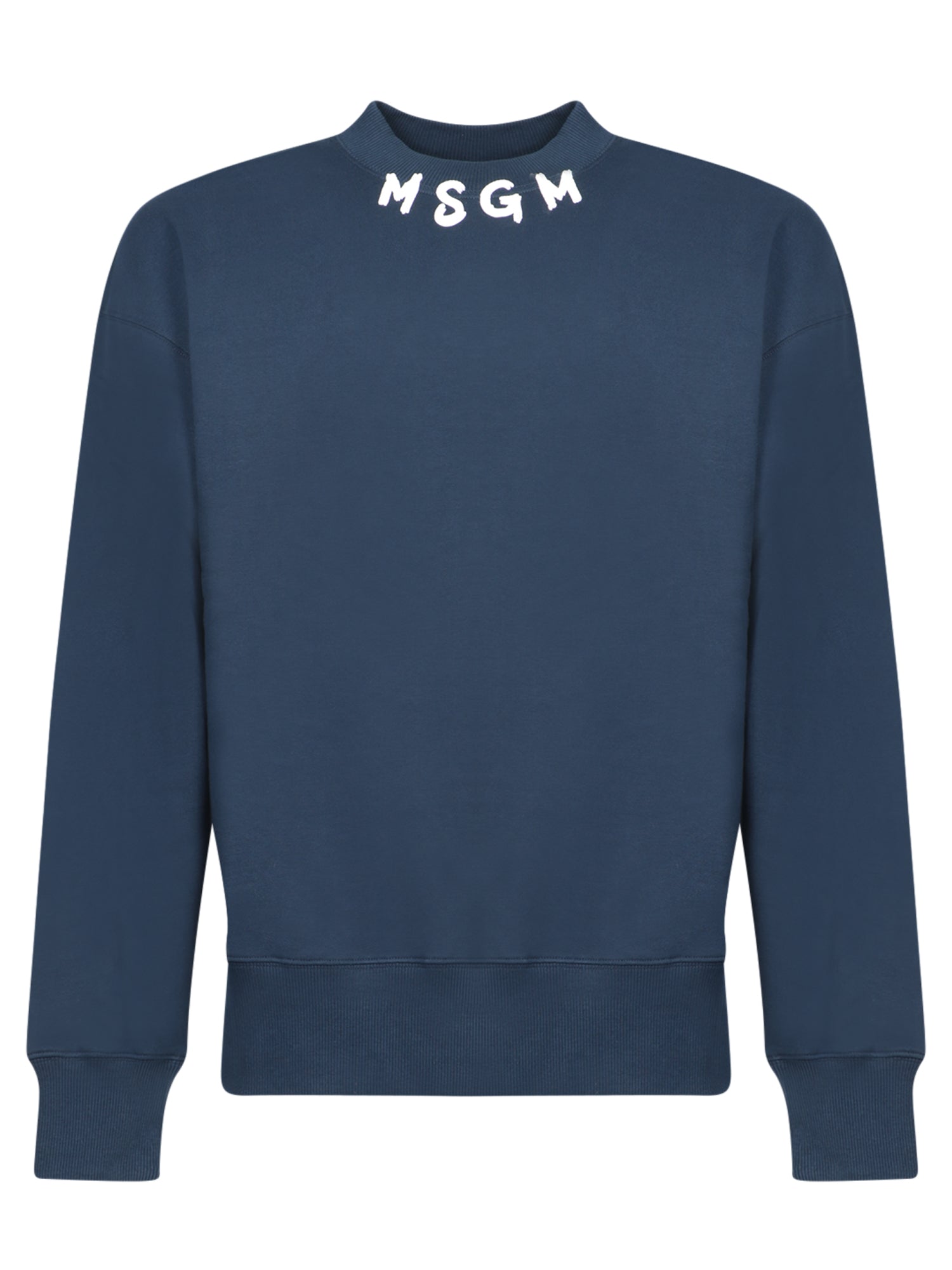 This blue MSGM sweatshirt, with its minimalist but distinctive design, features a white embroidered MSGM logo at the crew neck. Perfect for a stylish casual look, it offers both comfort and style.