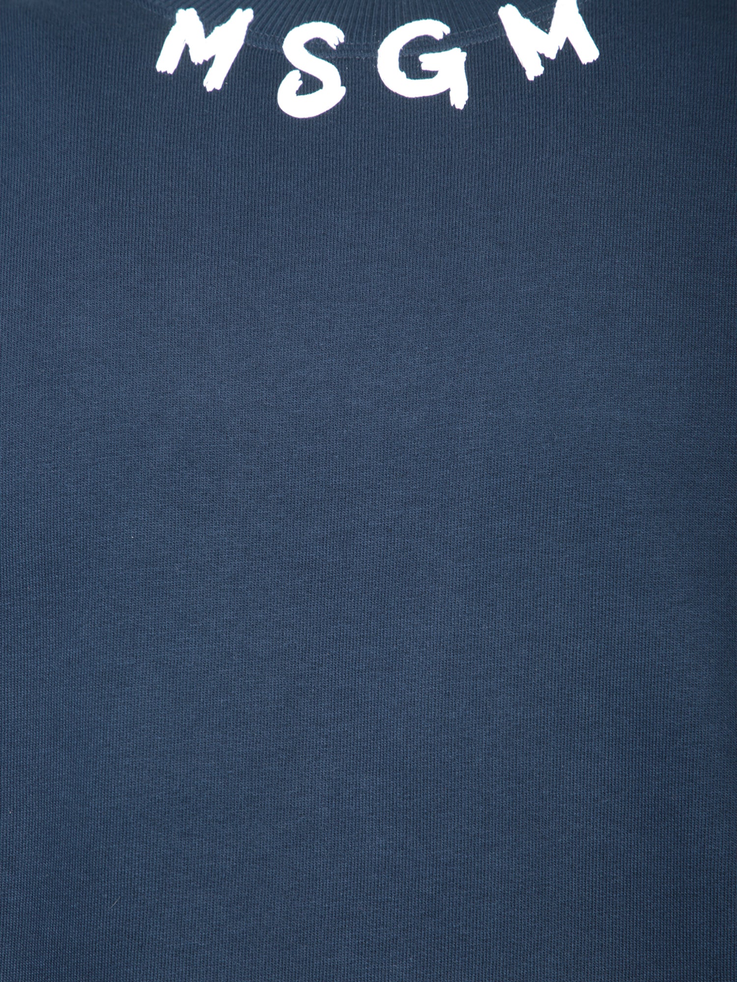 Long sleeve jersey sweatshirt. Ribbed neck, cuffs, and hem. Decorative MSGM logo on the neckline.