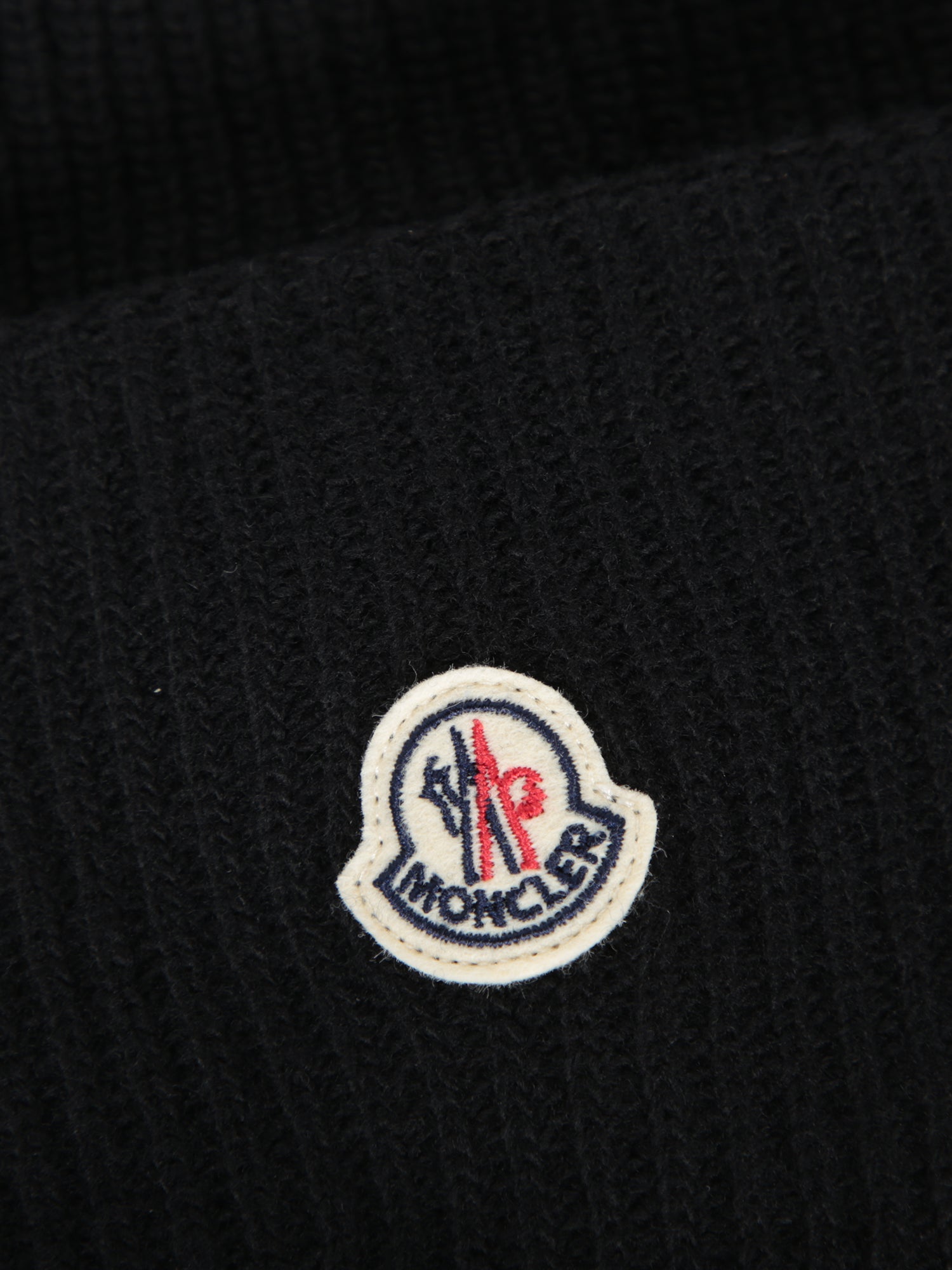 Wool beanie, ribbed fold-over cuff, front logo patch.