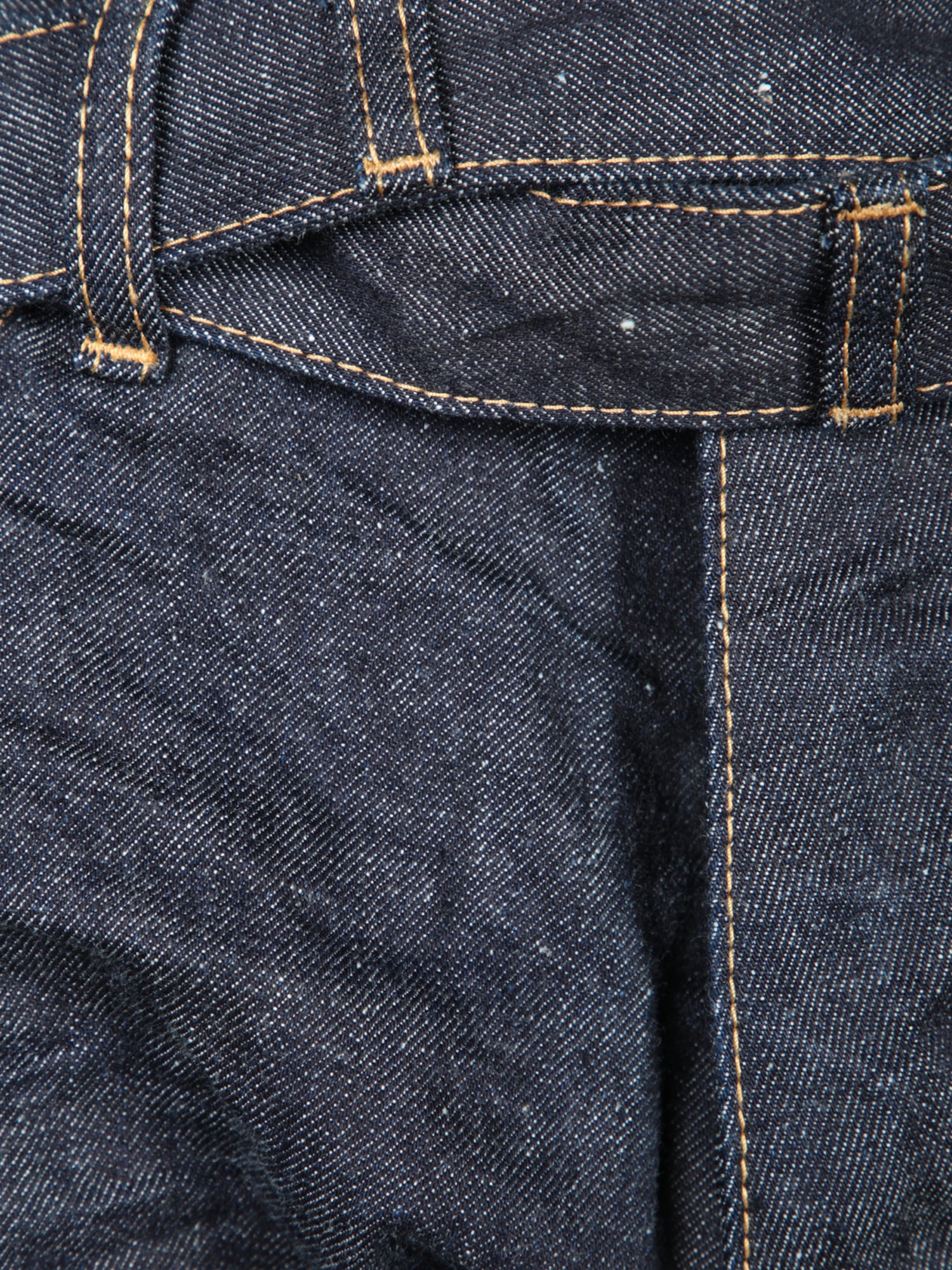 Five-pocket jeans. Integrated belt with buckle. Wide leg fit.