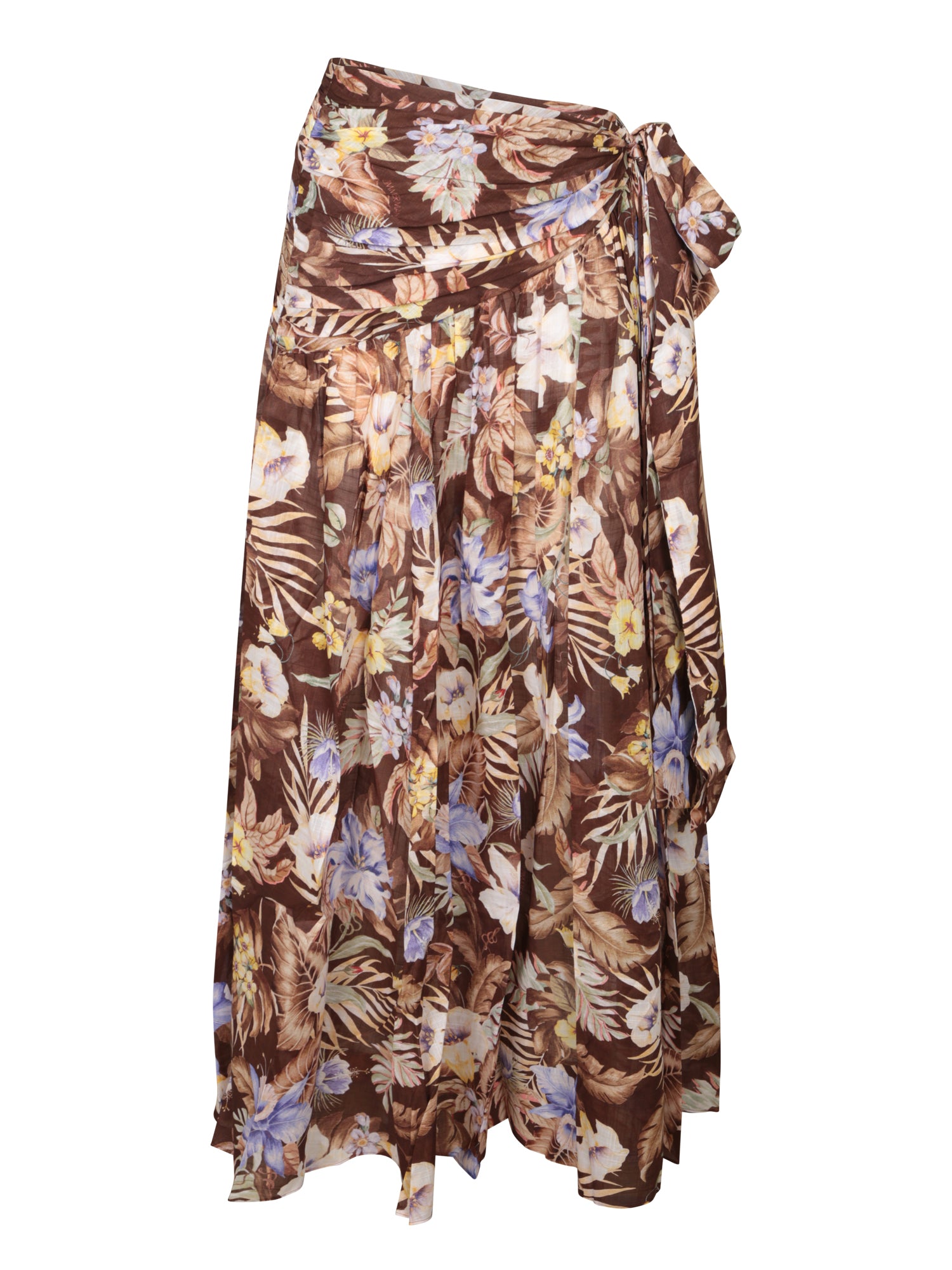 Maxi skirt in lightweight fabric, floral pattern, side bow detail.