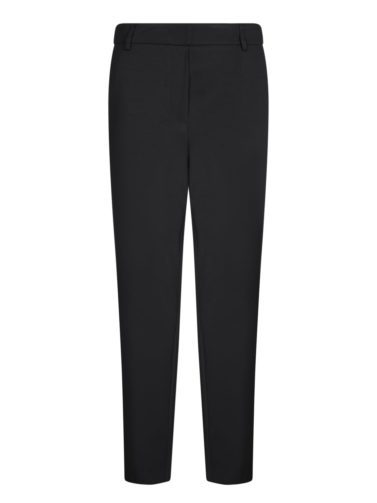 Milano stitch fabric trousers. High-waisted model with back elastic. Tapered cut.
