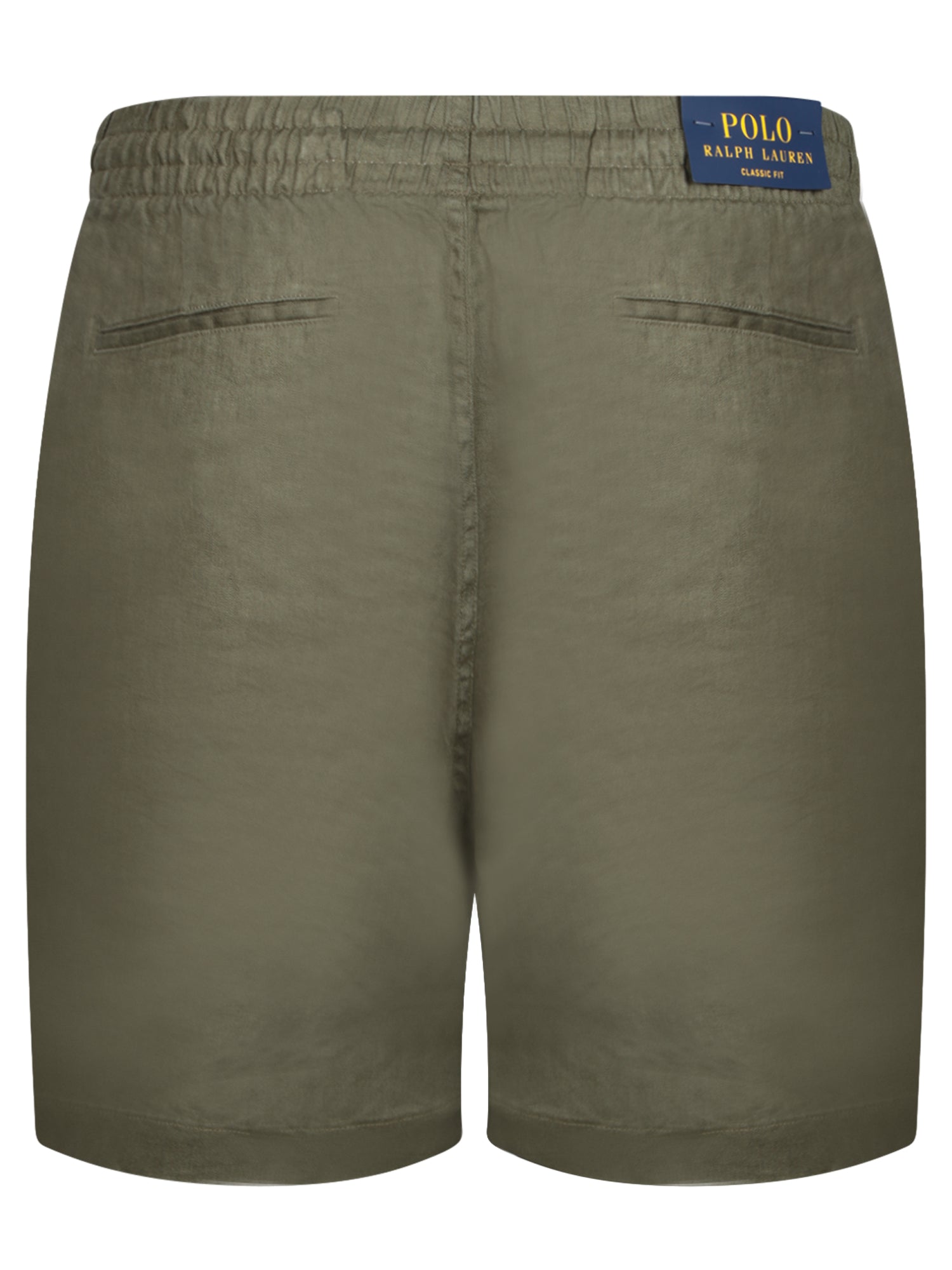 Elegant military green linen bermuda shorts by POLO RALPH LAUREN, featuring an adjustable waist for optimal comfort and the casual elegance of a minimal design.