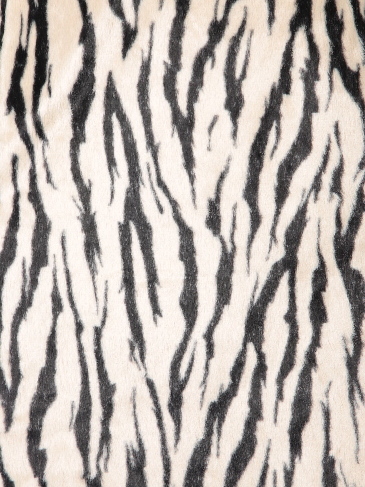 High-waisted mini skirt. Zebra pattern. Made from faux fur.