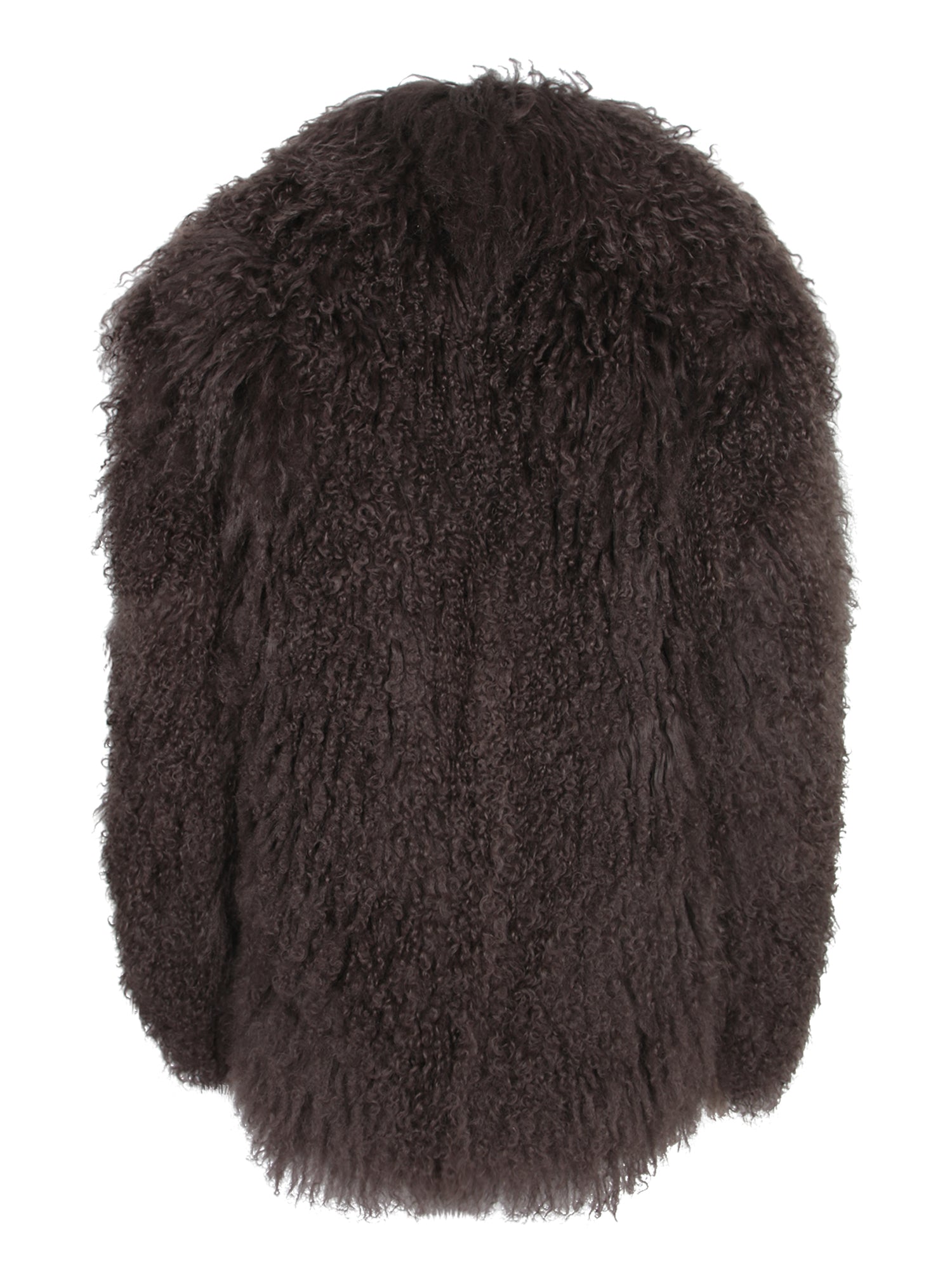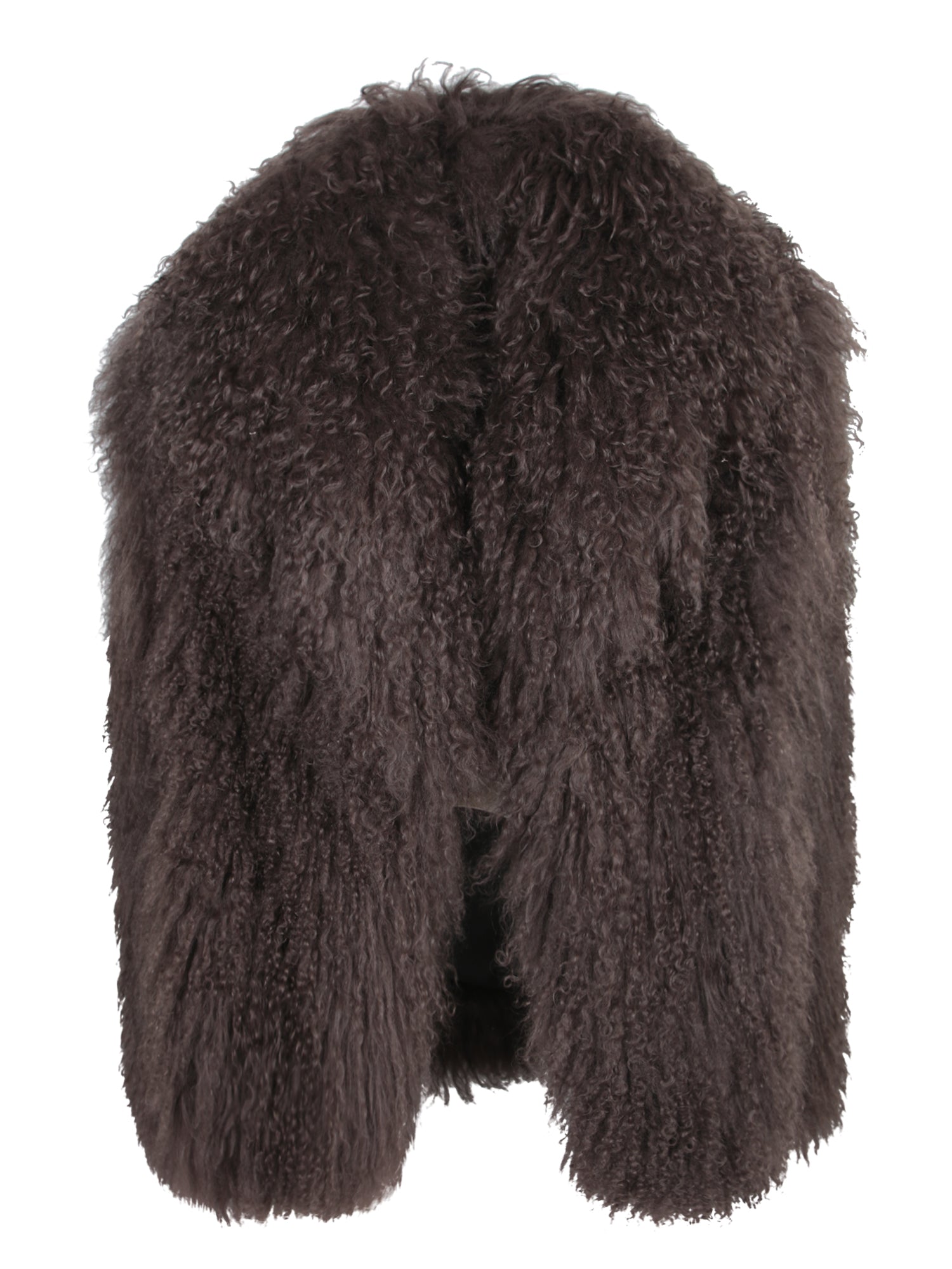 Mongolian lamb fur. Wide three-quarter sleeves. No front closures.