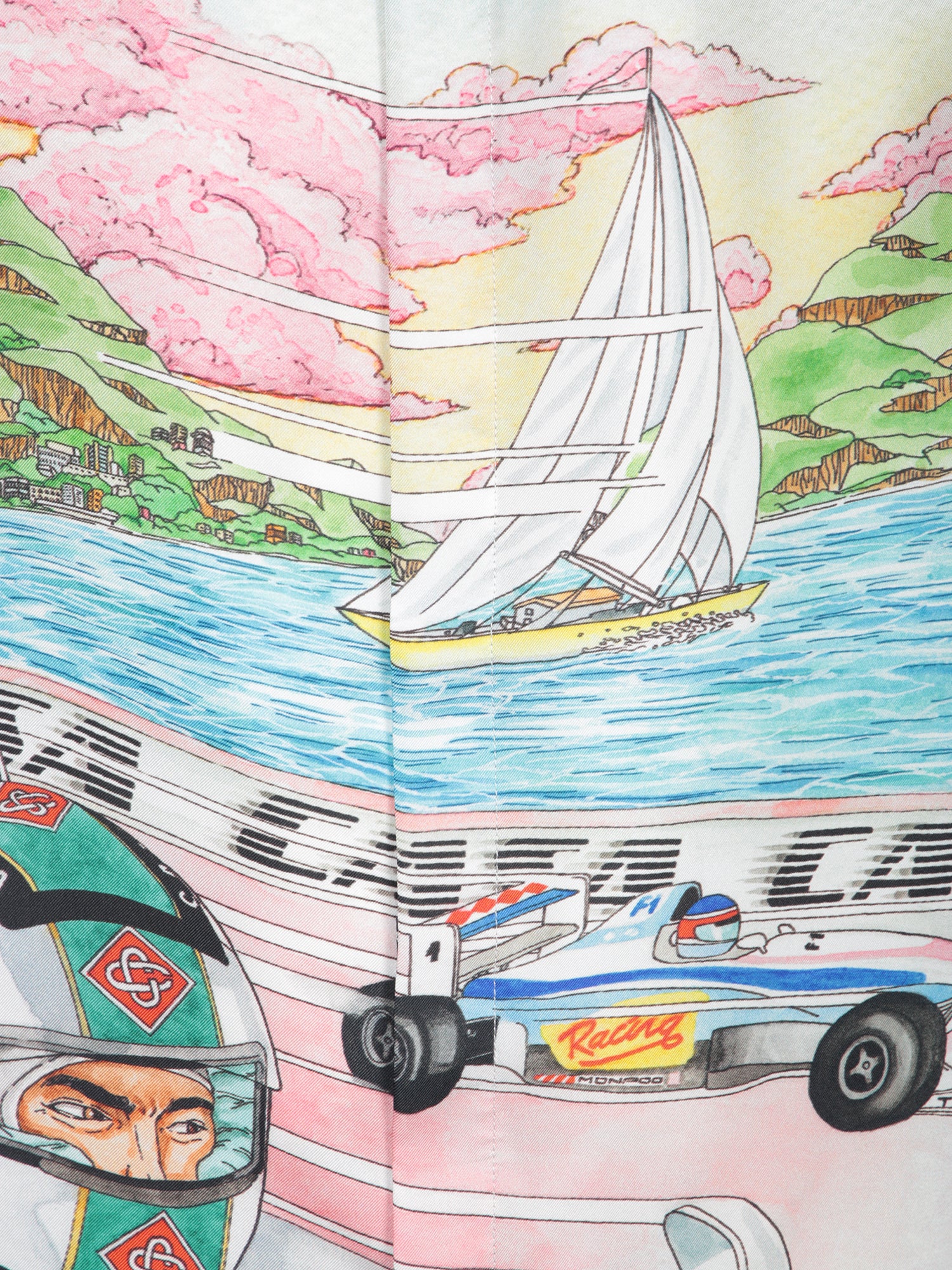 This Casablanca shirt features race-inspired artwork blended with maritime elements and idyllic sceneries, perfect for those who love to stand out.