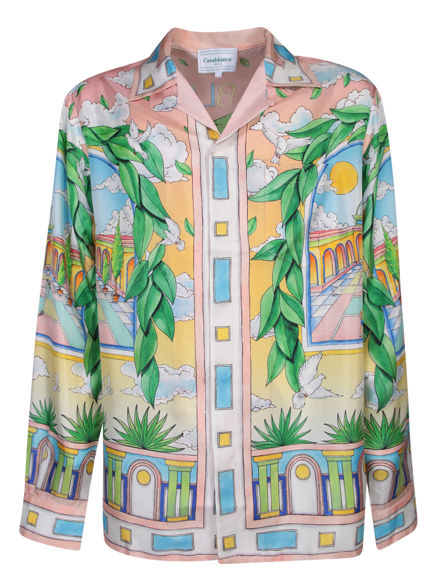 Long-sleeve shirt made from pure silk. Classic collar. Button front closure.