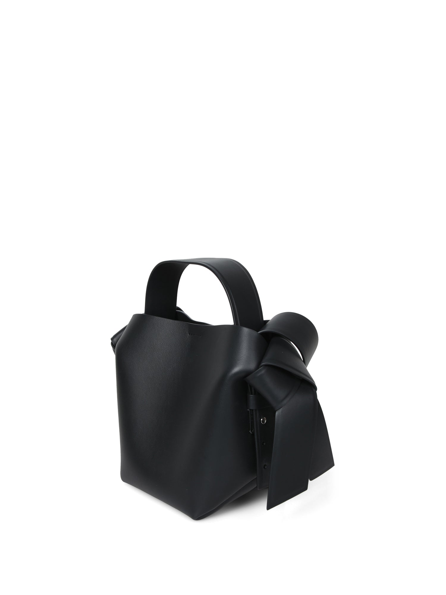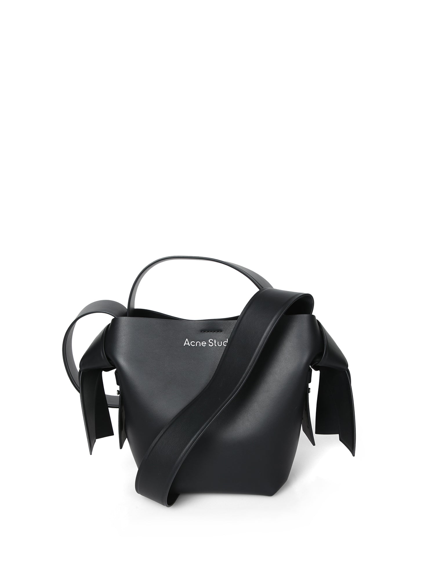 Elegant Acne Studios bag in black leather, featuring a sophisticated knot inspired by the Japanese 'Musubi' technique. Equipped with an adjustable strap, this bag perfectly merges functionality with contemporary style.
