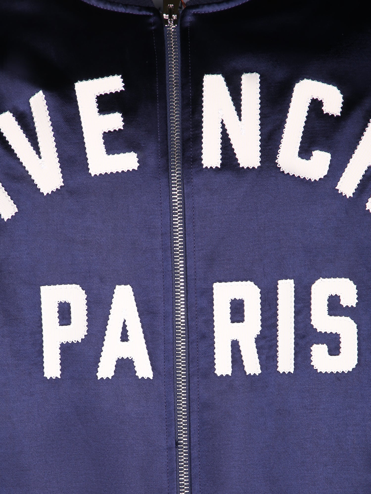 Bomber jacket in technical fabric, front zip closure, applied white logo details.