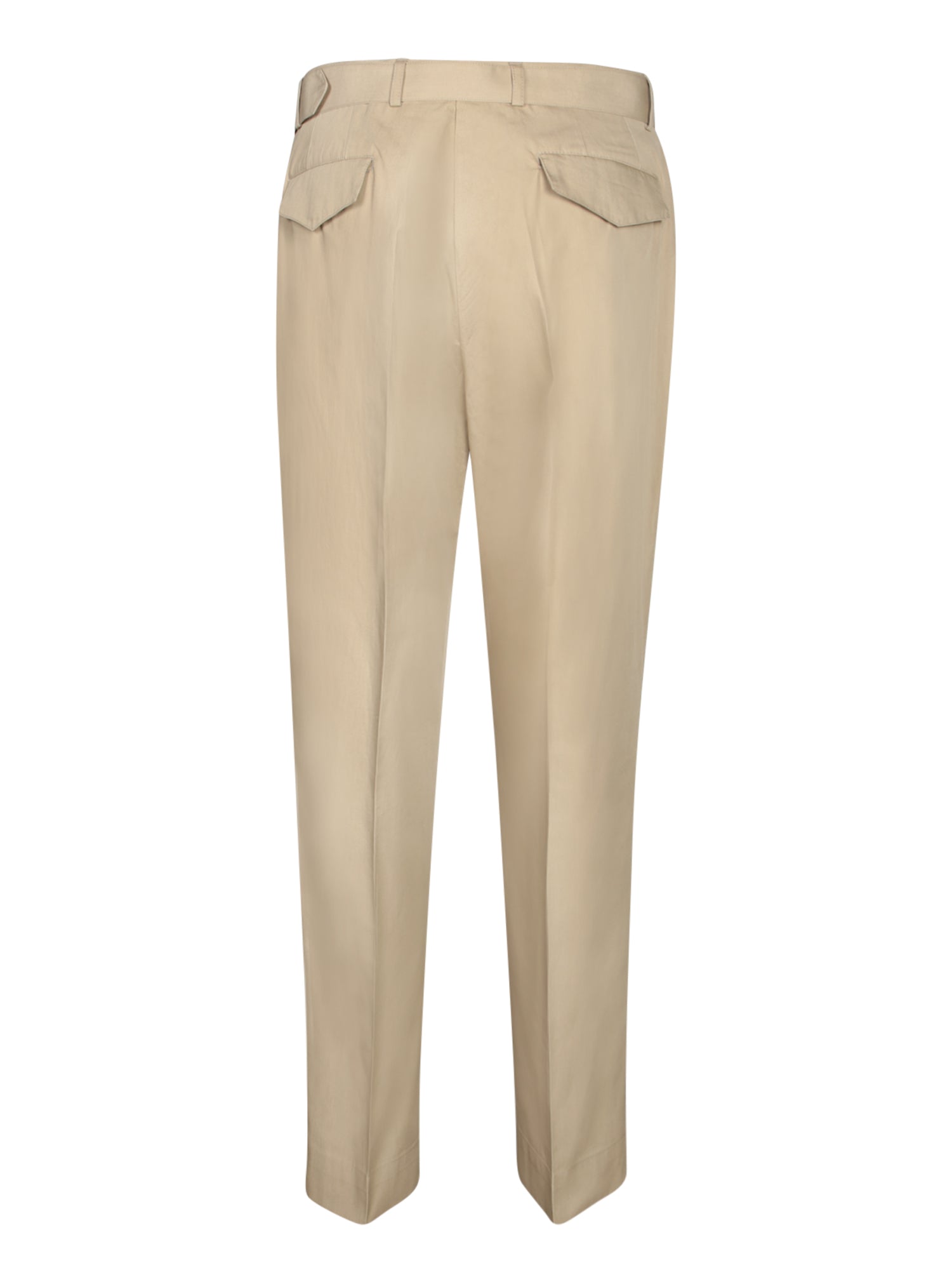 Crafted by Officine Generale, these beige poplin cotton trousers are an elegant and versatile addition to any man's wardrobe. The clean design and tailored fit deliver a modern and sophisticated silhouette.