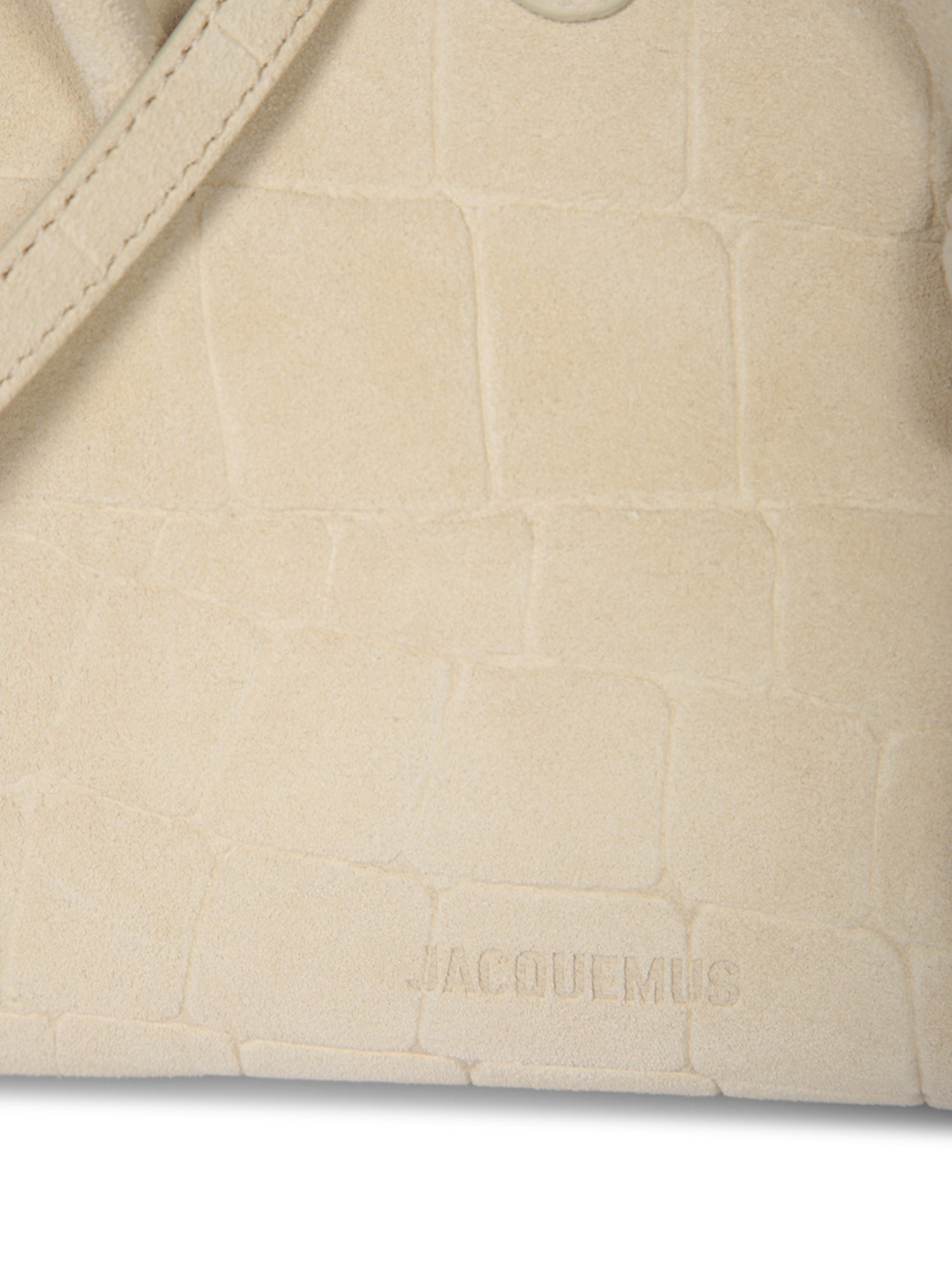 Crocodile embossed leather. Top handles, adjustable and detachable shoulder strap. Top zip closure.
