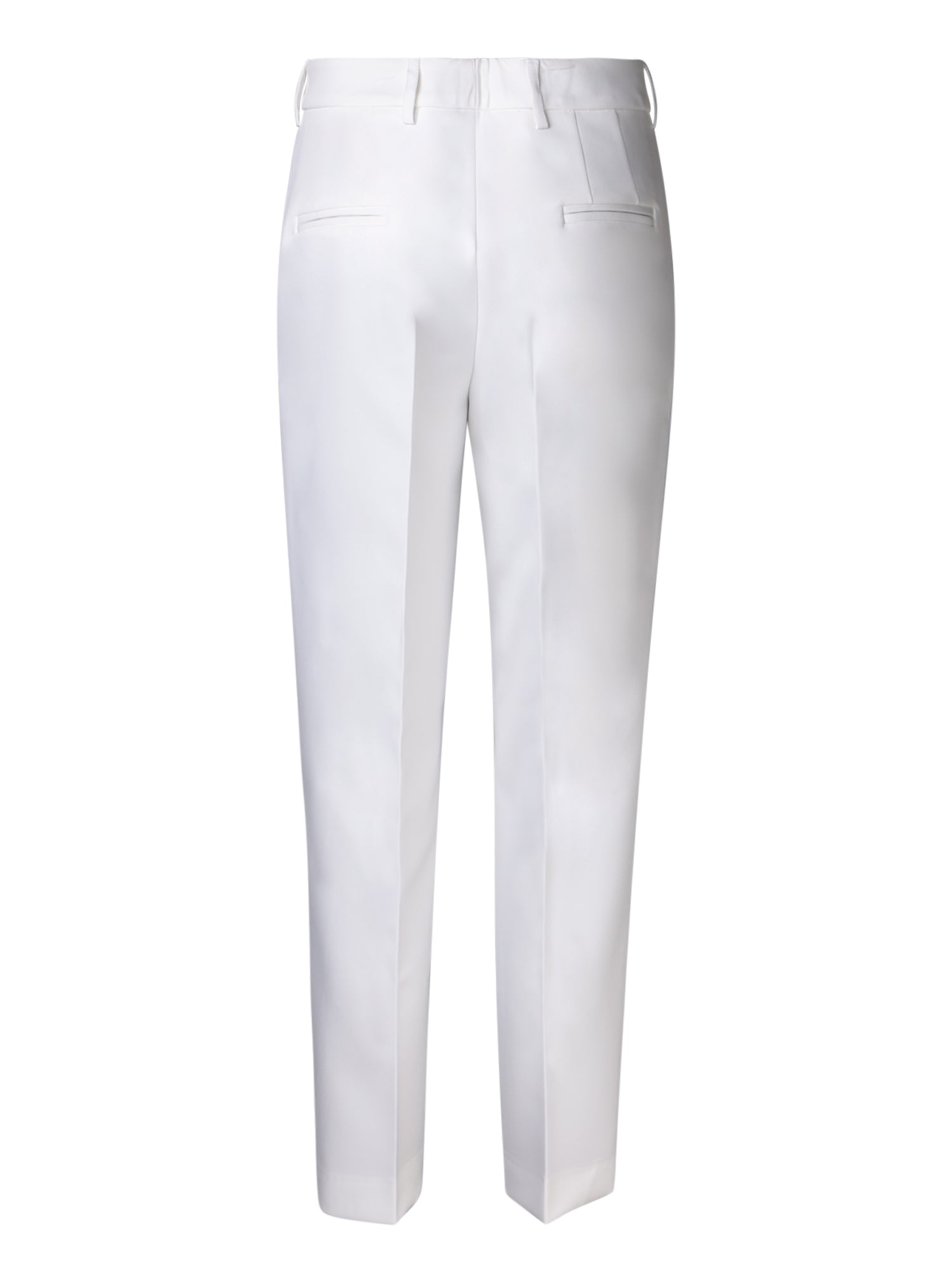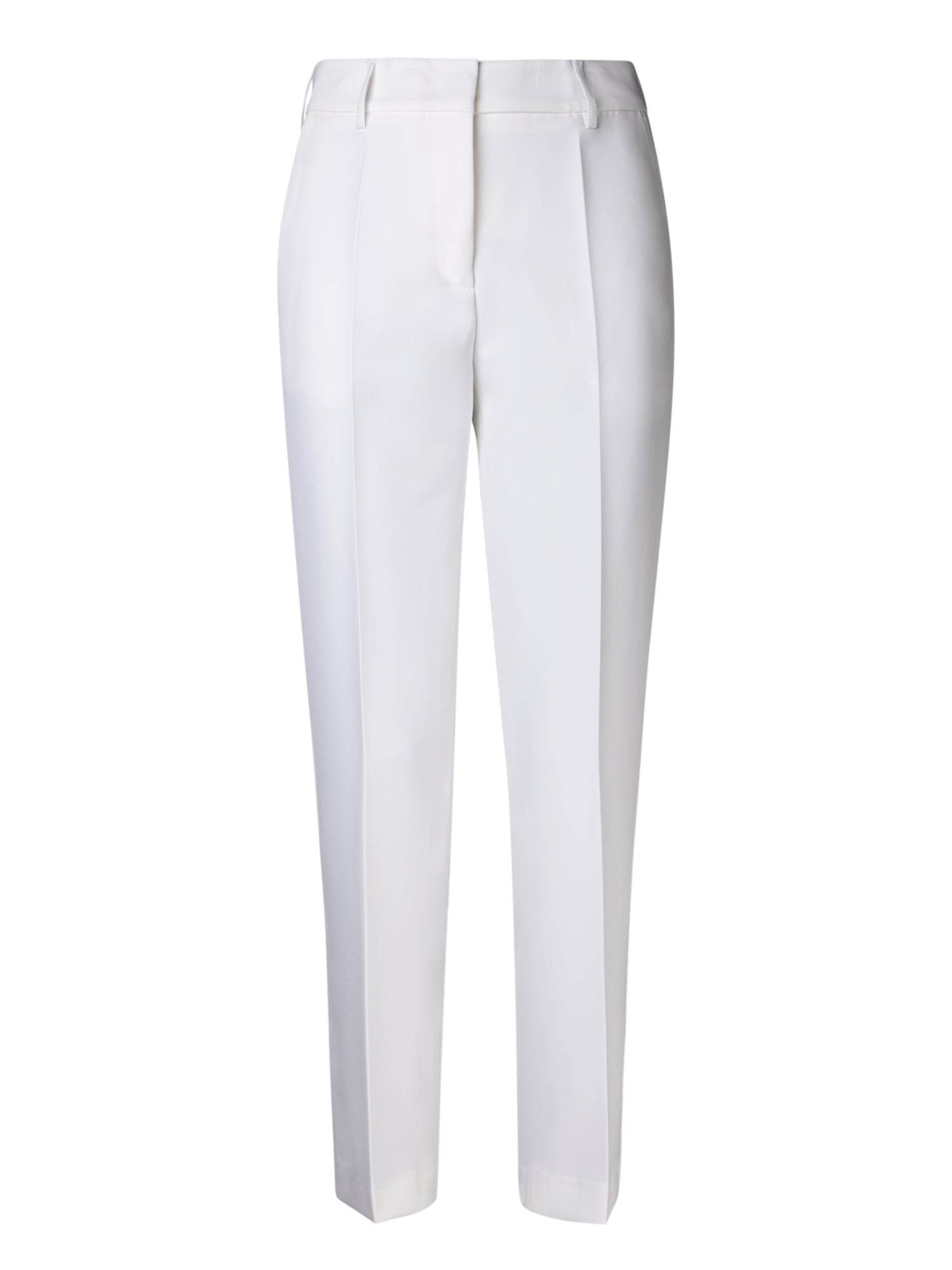 Mid rise. Concealed front fastening. Belt loops. Tone-on-tone stitching. Cigarette model. Regular fit. Straight hem. Color: white