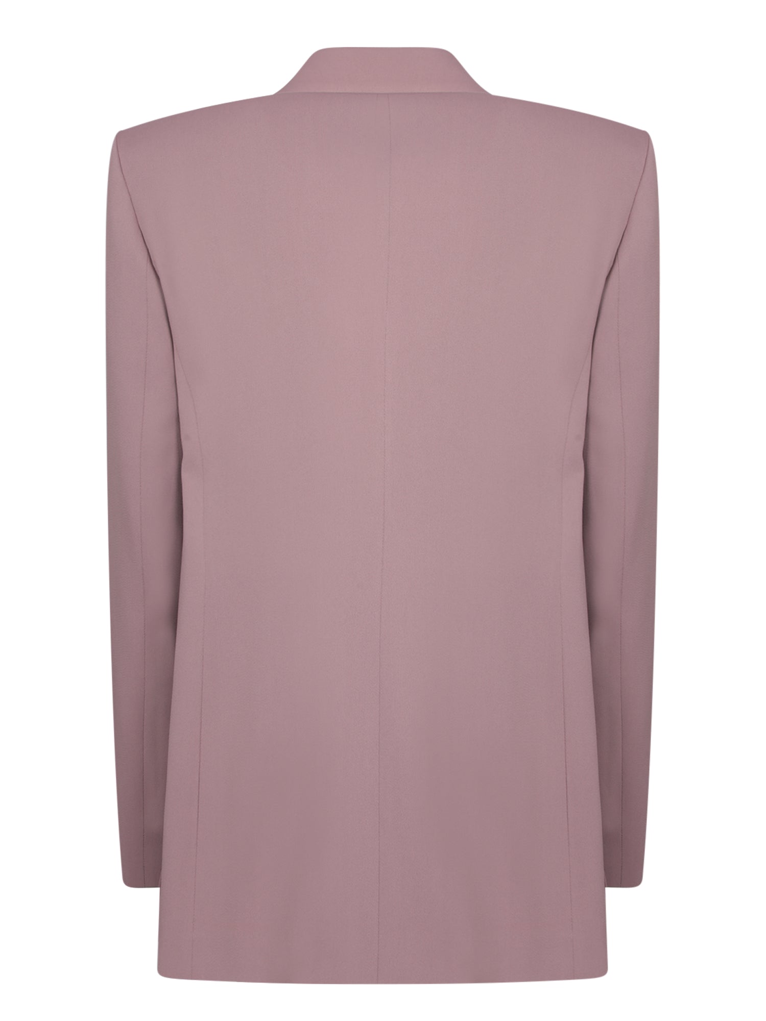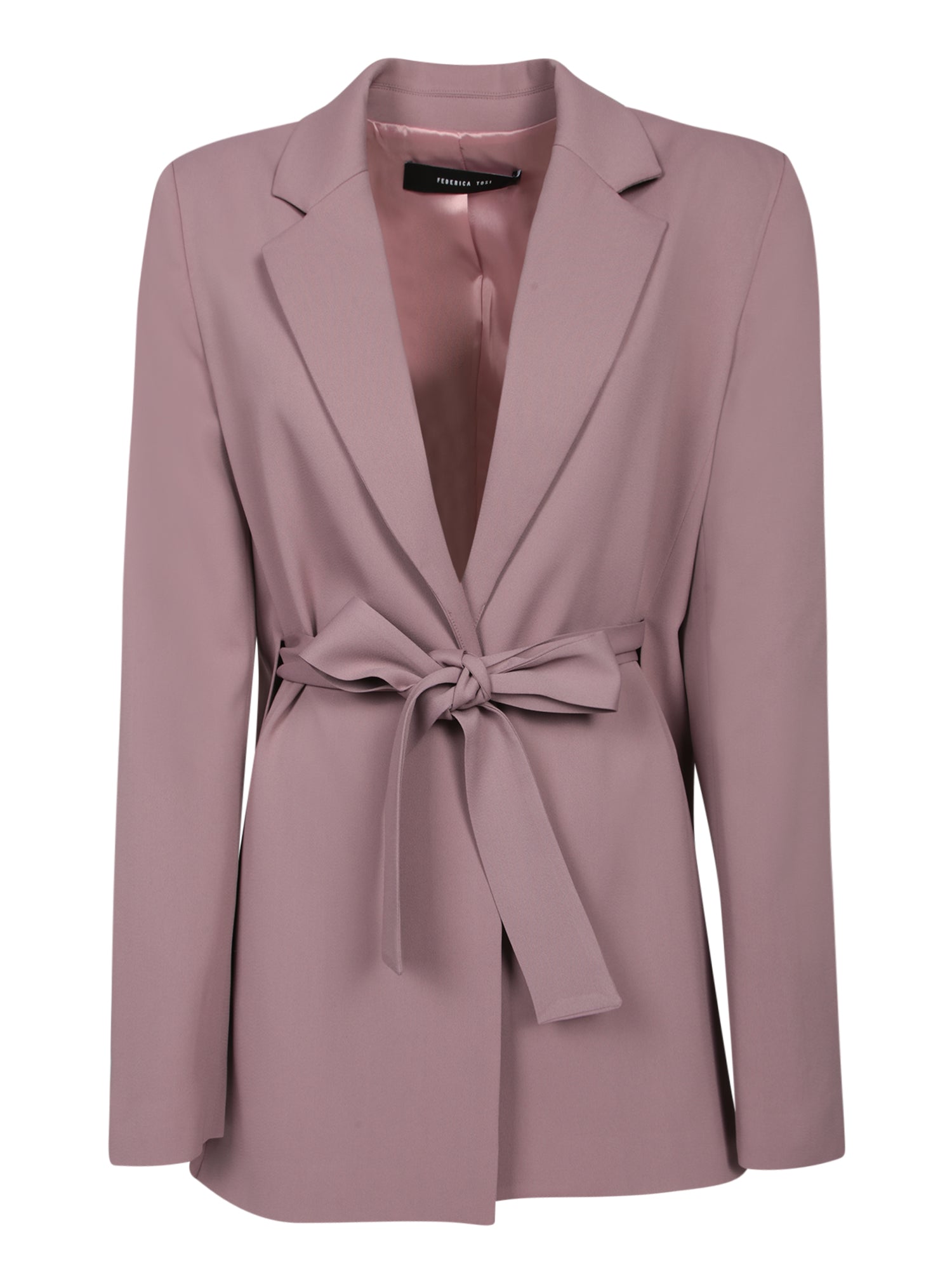 This elegant pink blazer from Federica Tosi, crafted in soft cady fabric, features a refined design with side slits for a contemporary touch. Complemented with a coordinating belt, it is perfect for a chic office look or for special occasions.