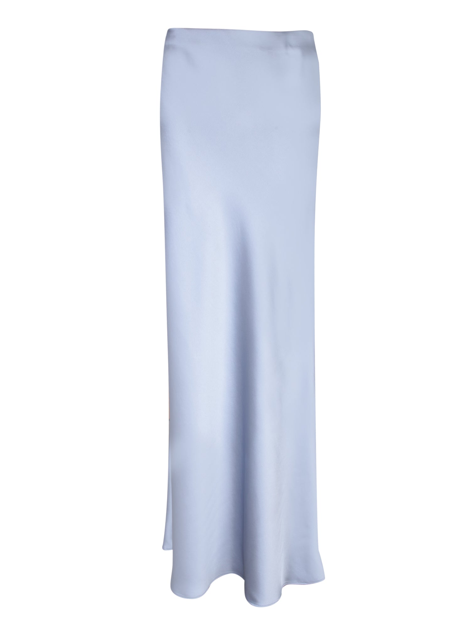 The epitome of modern elegance, this powder-colored satin skirt by Blanca Vita features a plunging neckline and a cut that celebrates the feminine figure.
