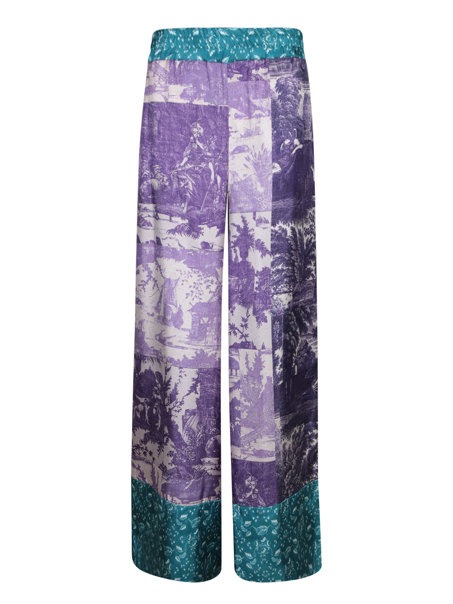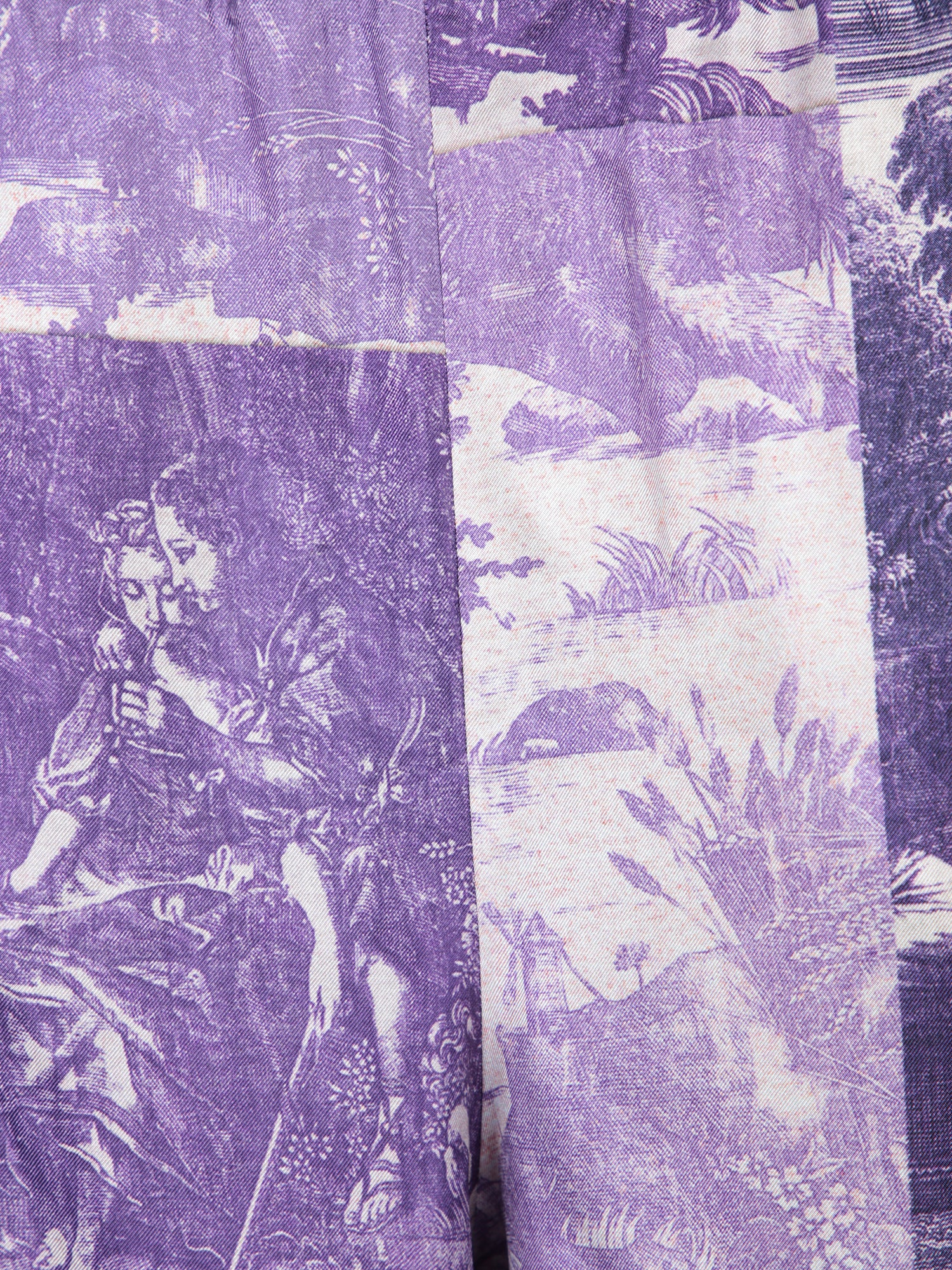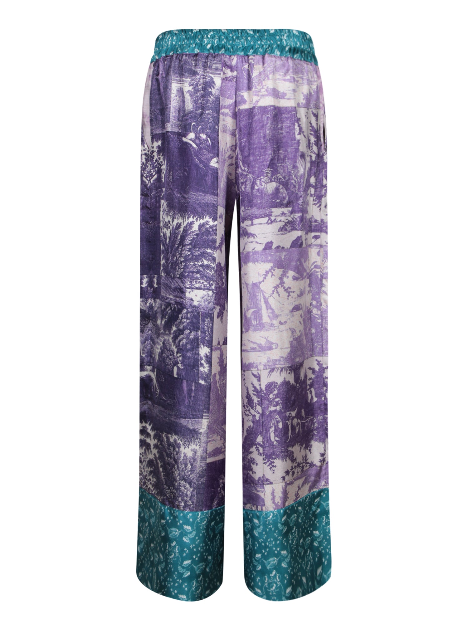 Wide-leg pants. Elastic waistband. Silk satin fabric with graphic print.