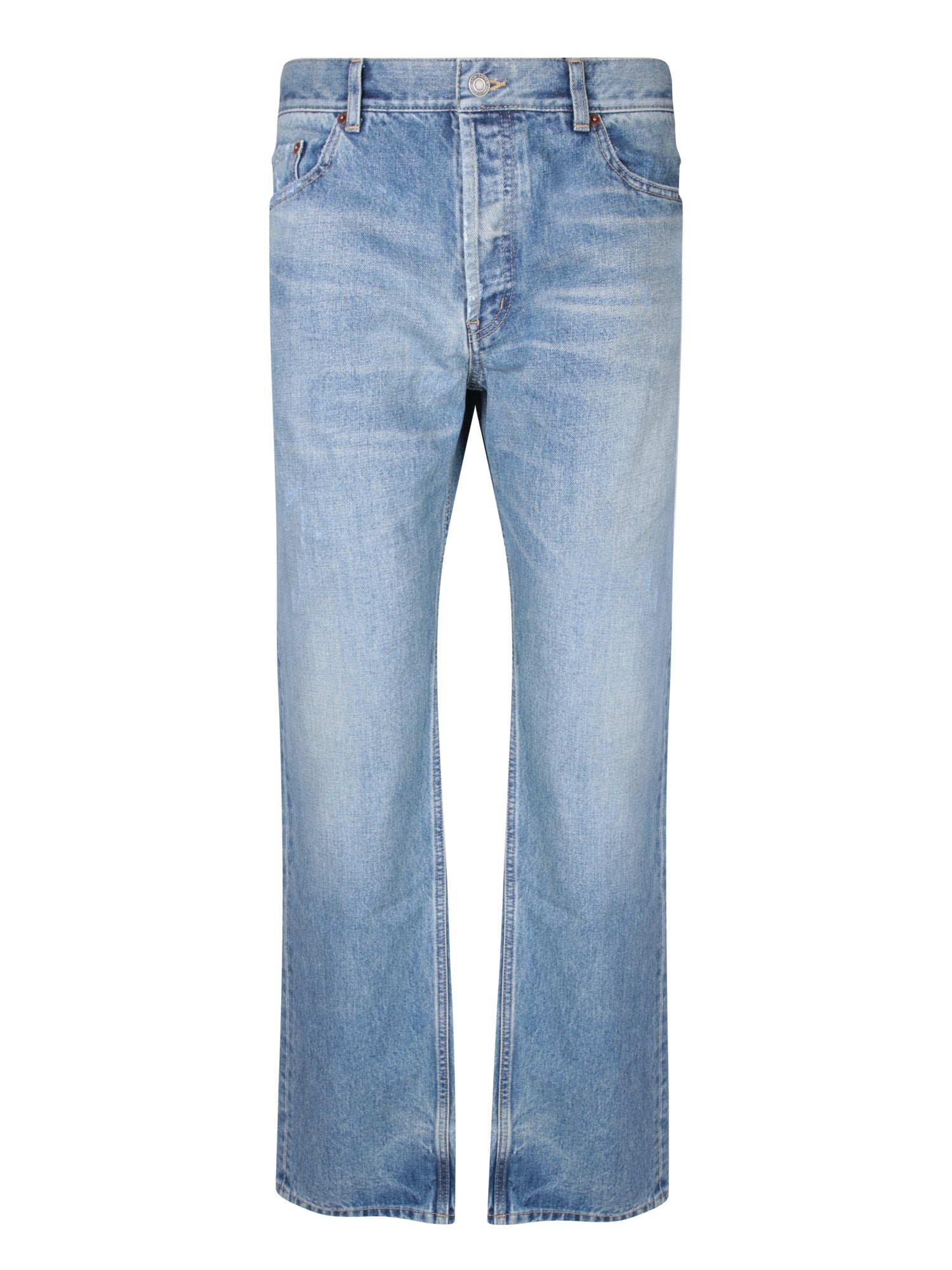 Relaxed straight fit. Washed wash. Classic five pockets.
