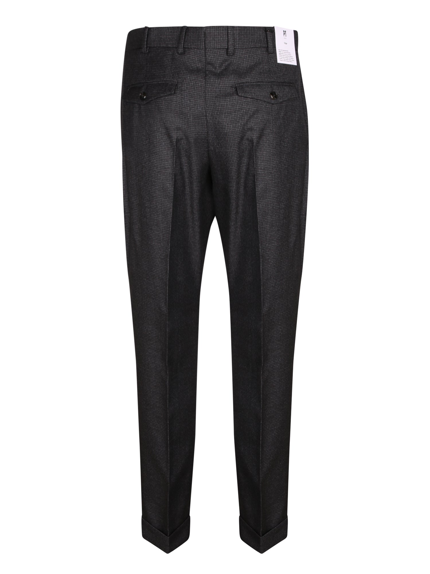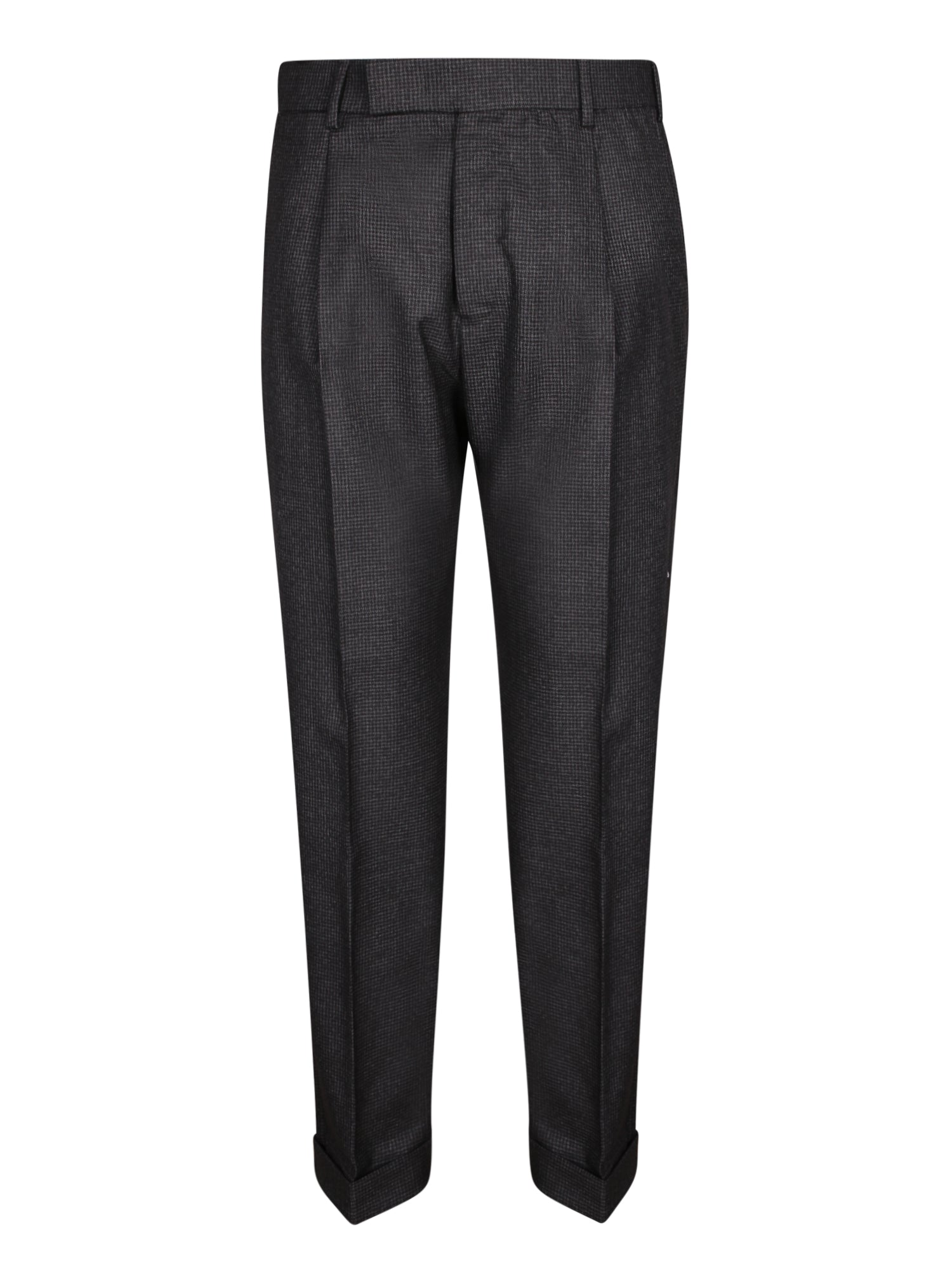 Prince of Wales print design. Slim fit. Zip and button closure.