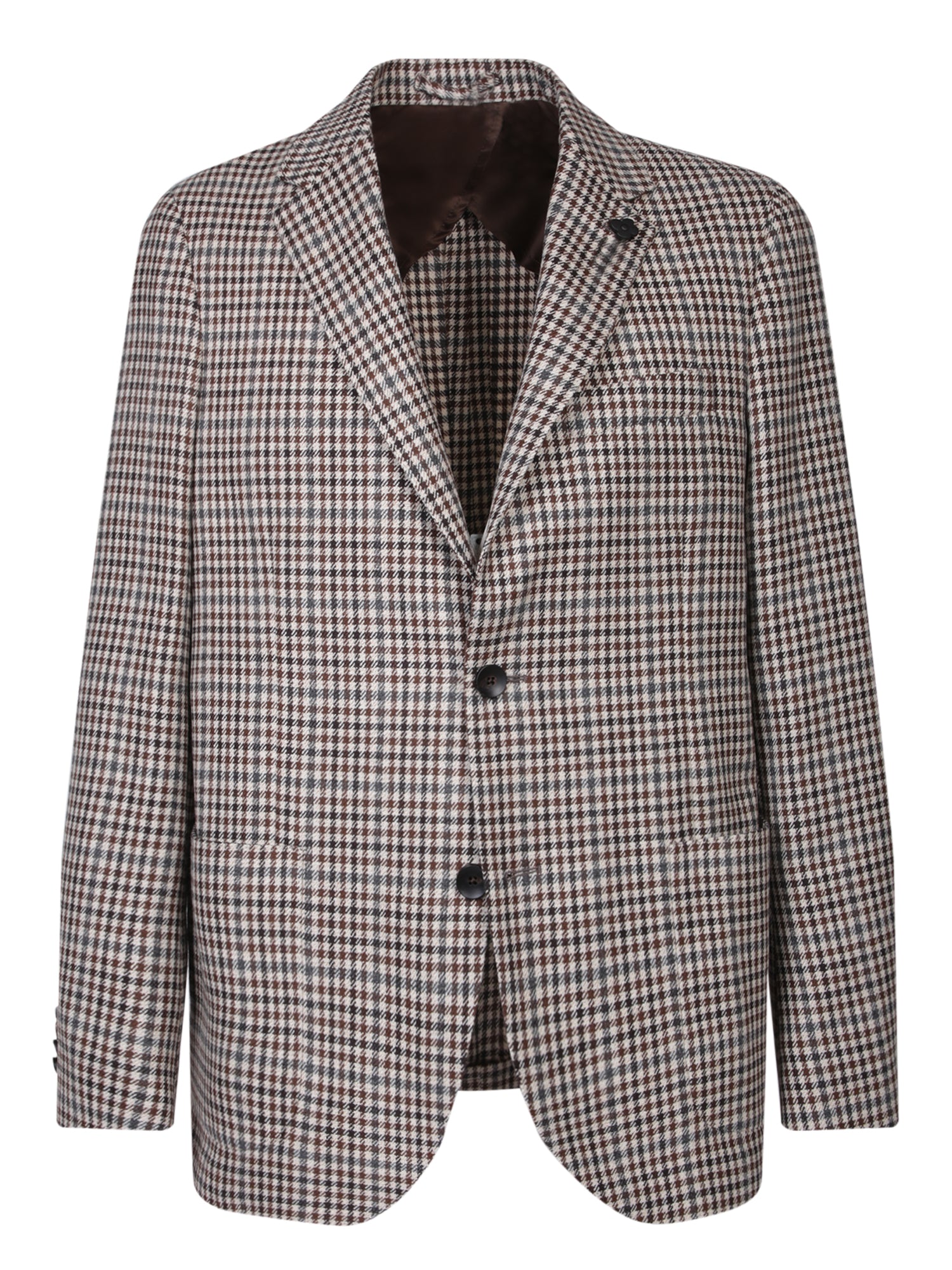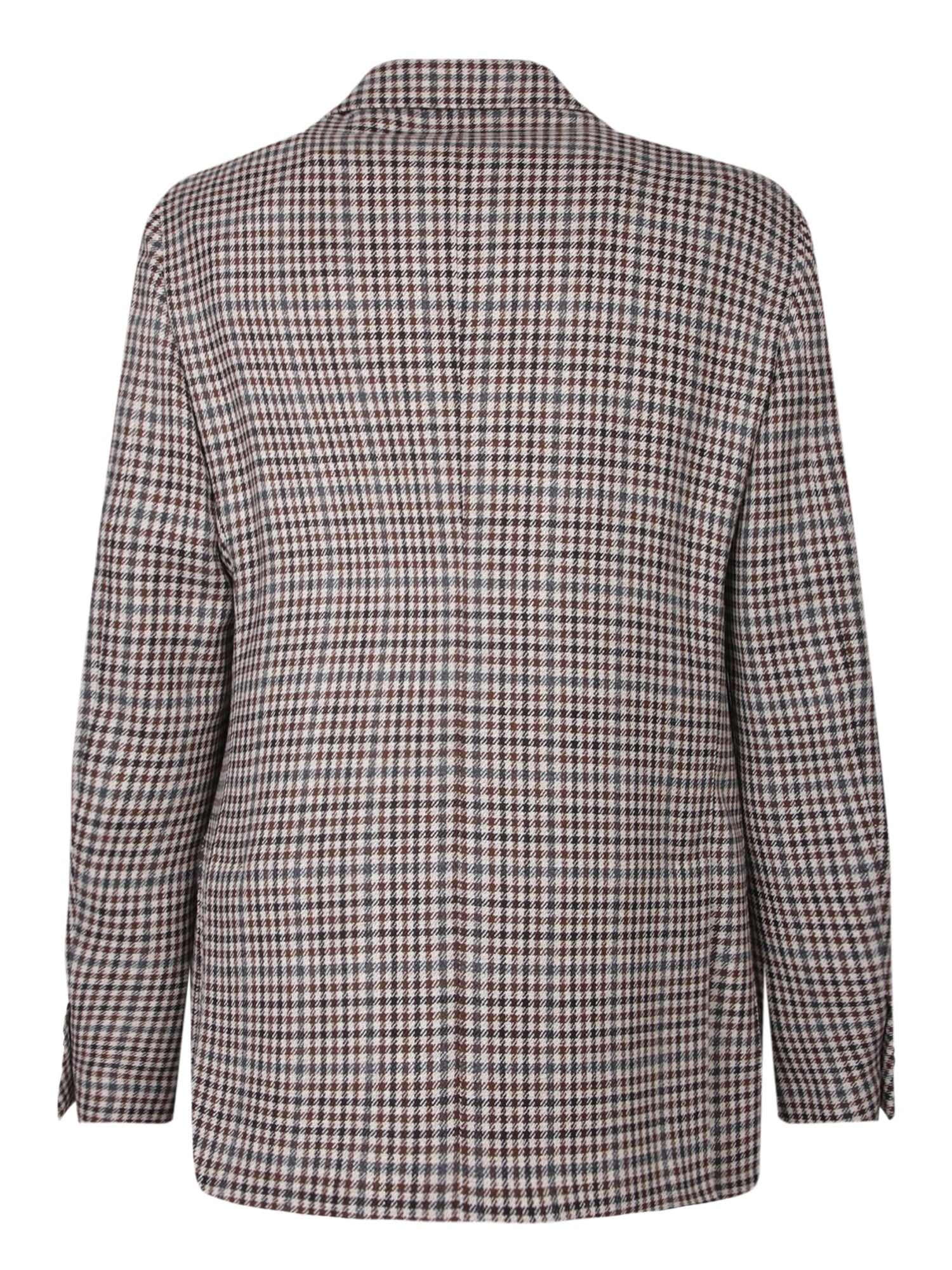 Checkered fabric jacket. Front button closure. Two front flap pockets and one chest pocket.
