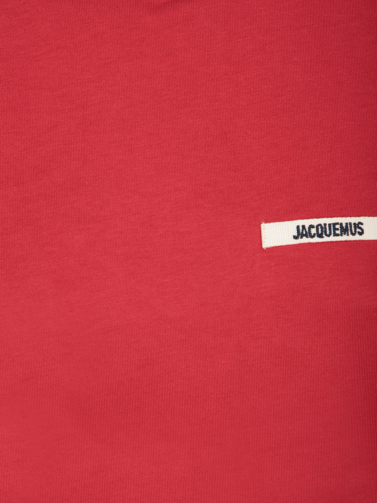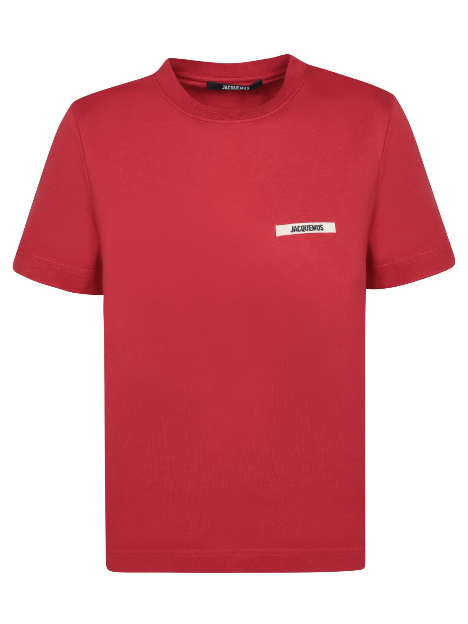 Short sleeve t-shirt. Contrasting Jacquemus logo on the chest. Knit round neckline.
