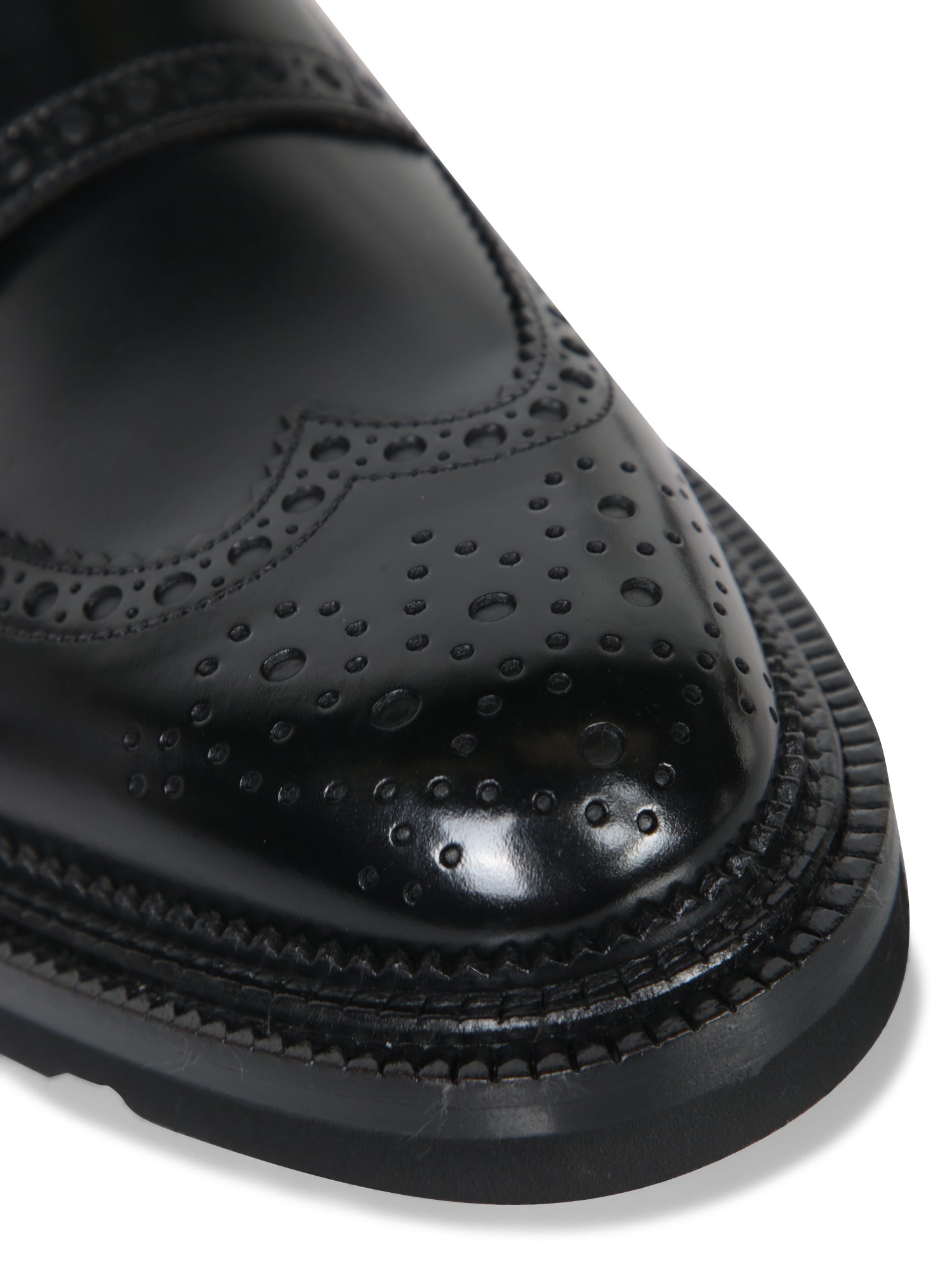 Leather Monkstrap shoes. Brogue detailing. Double metallic buckle.