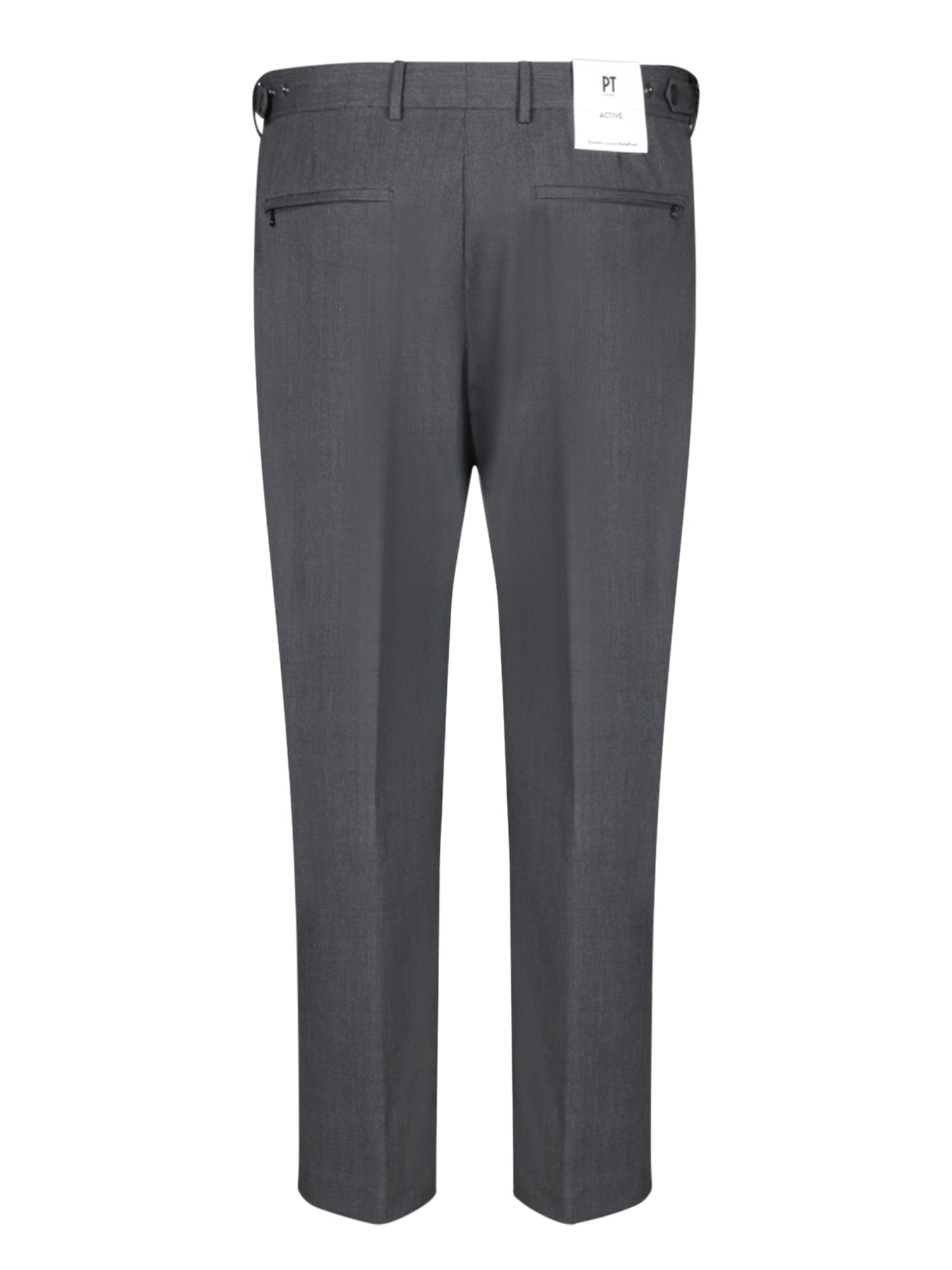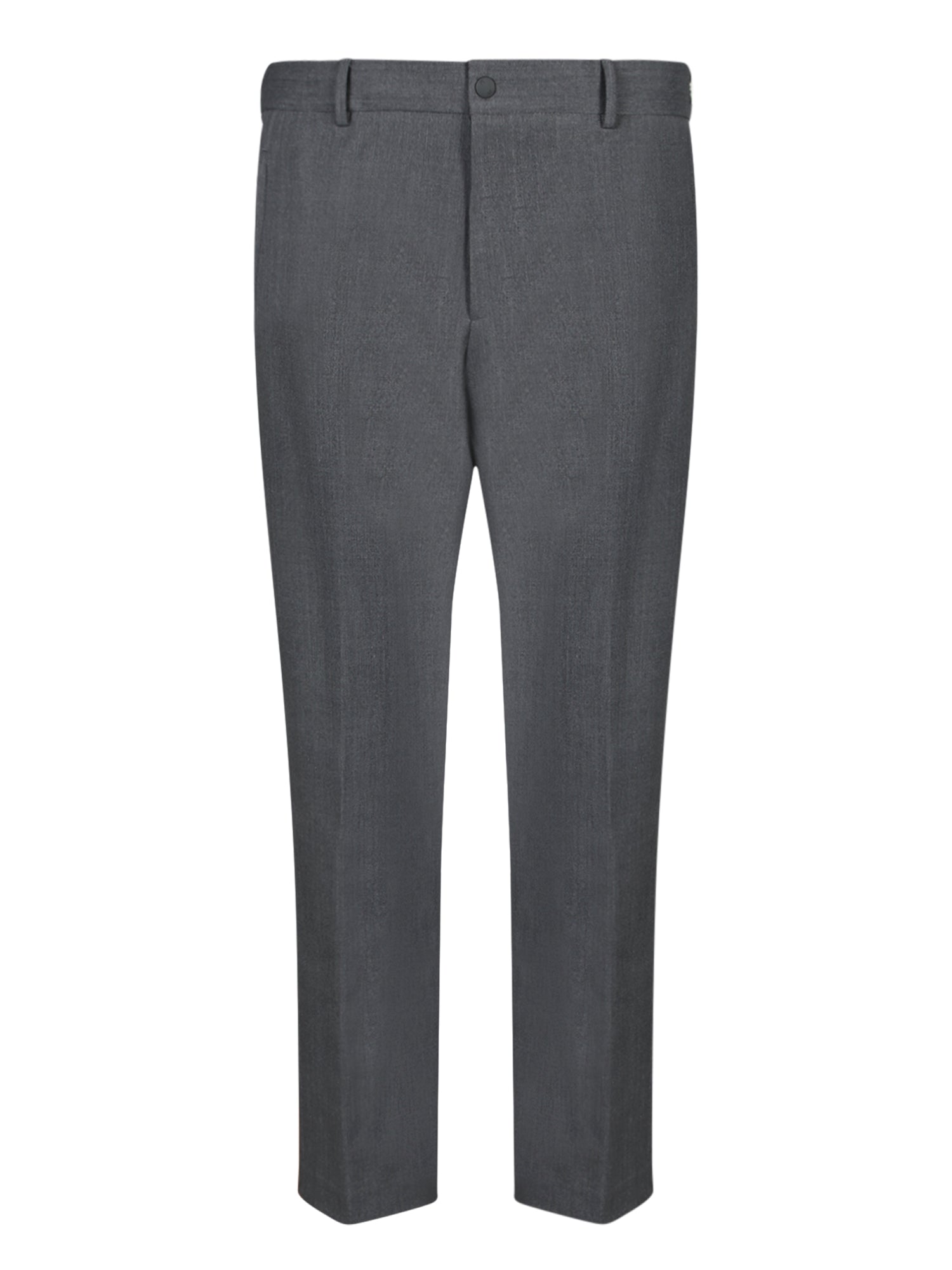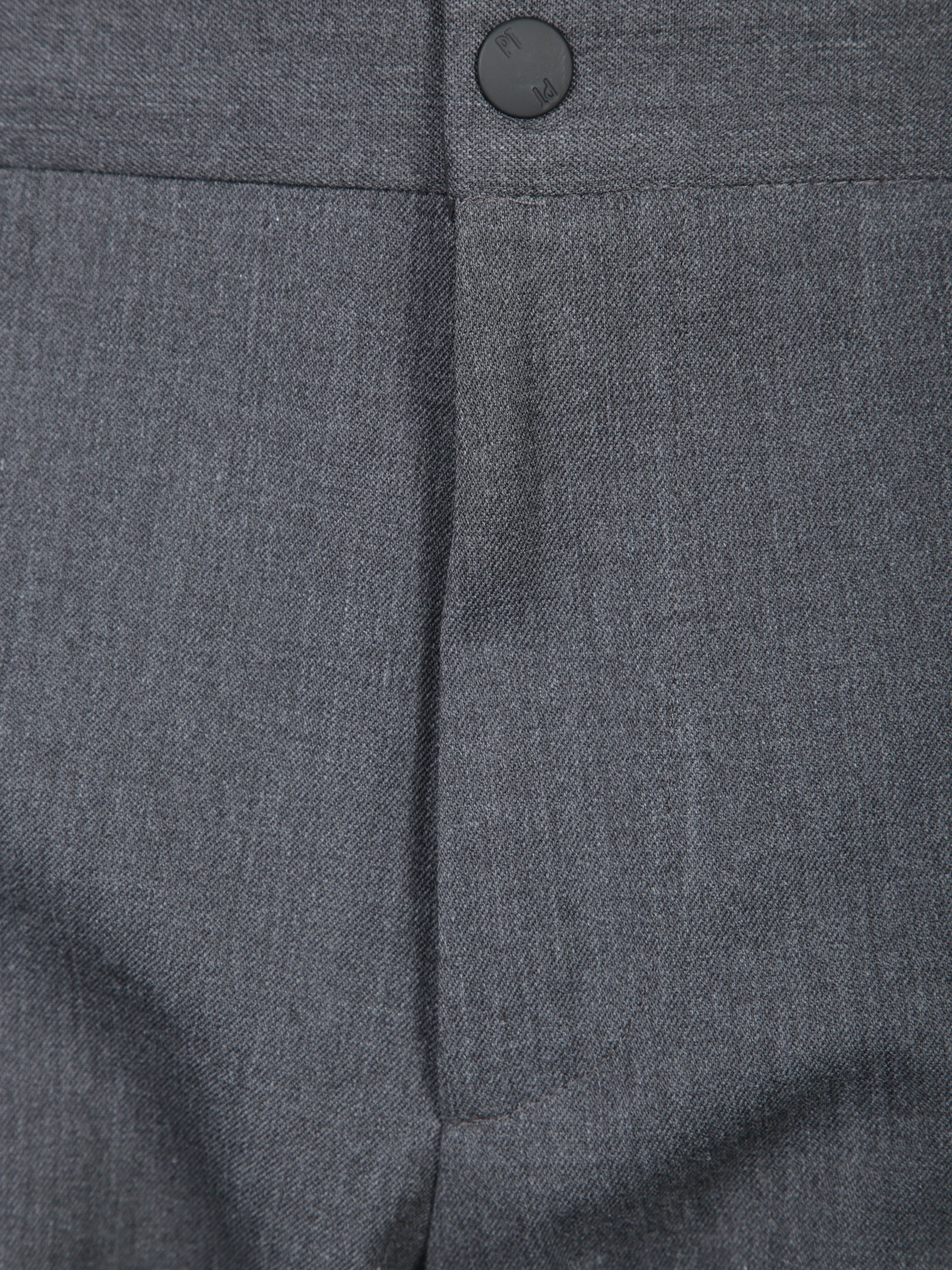 Mixed wool fabric. Front zip and button closure. Two side pockets and two back pockets.