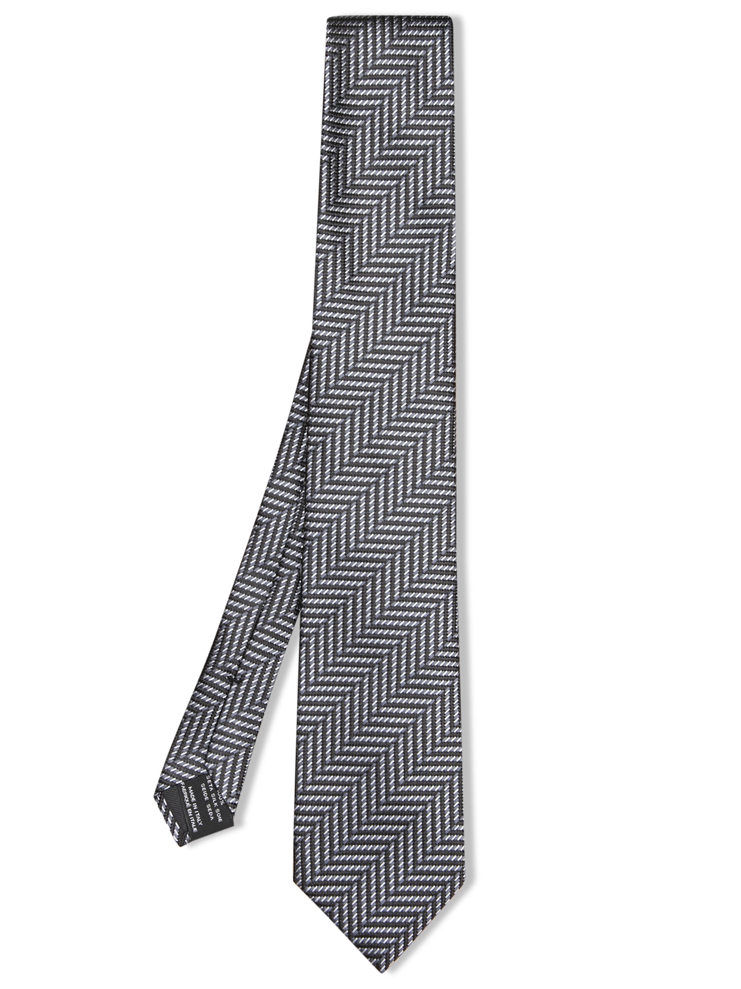 Pure silk tie. Zigzag pattern design. Black silk lining with TOM FORD logo.