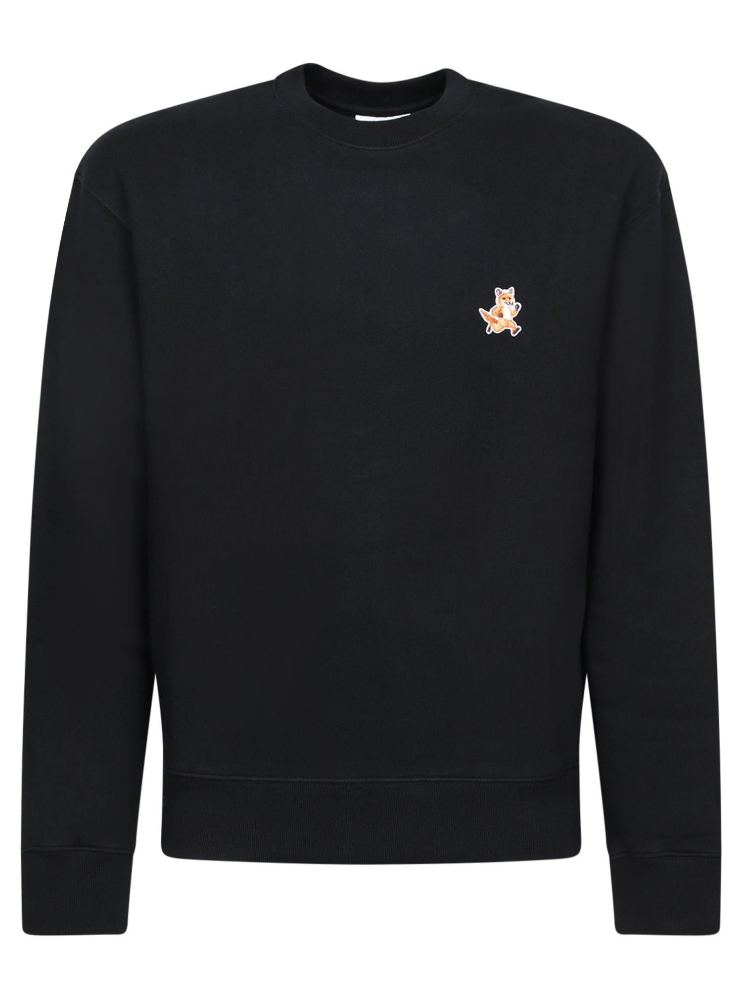 Black cotton sweatshirt. Crew neck. Long sleeves. Iconic Speedy Fox patch on the chest.