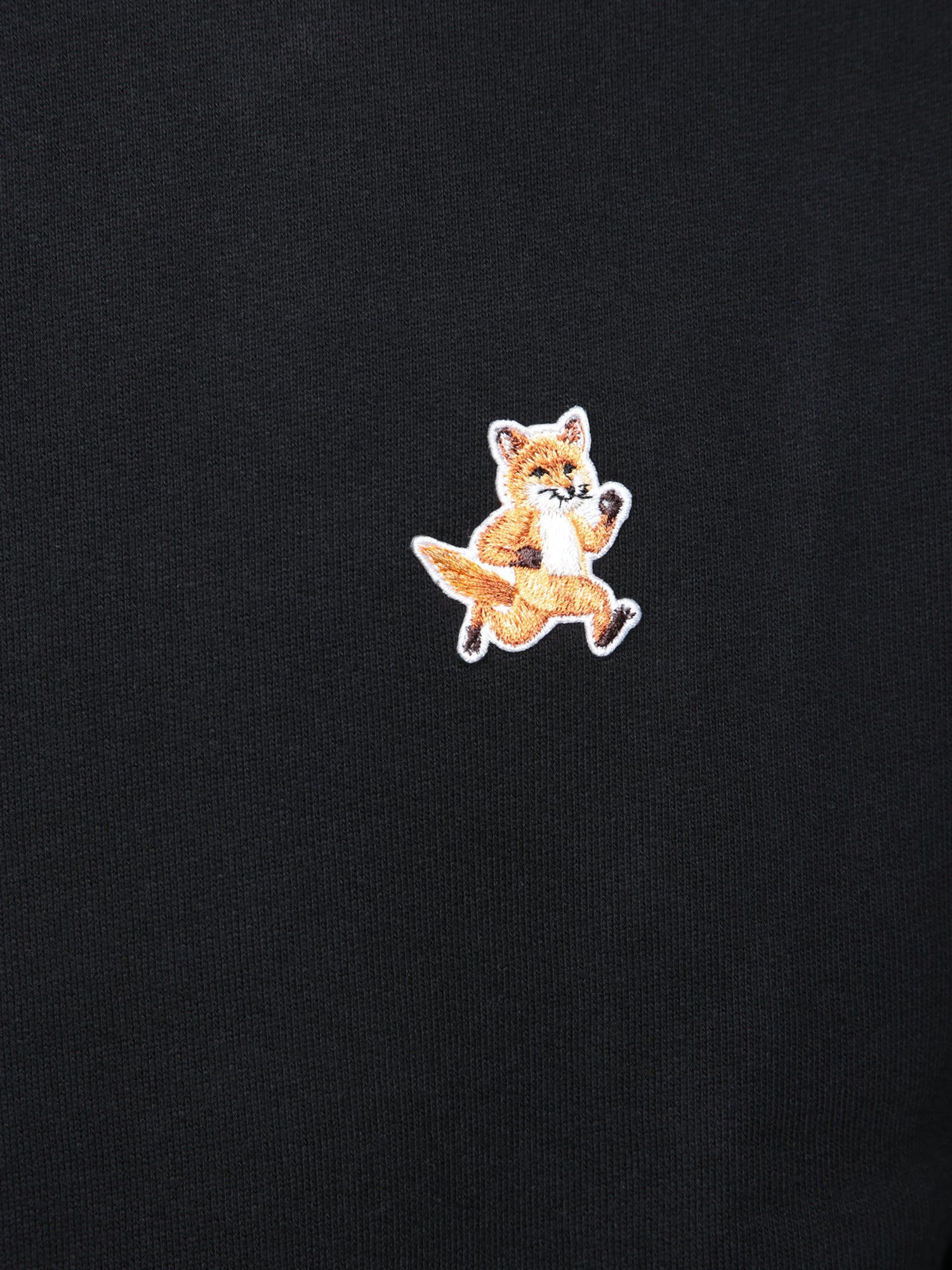 The Maison Kitsuné Speedy Fox Patch Black Sweatshirt, crafted from soft cotton, features a clean design with a distinctive detail: the fox patch, a symbol of the brand, that adds an exclusive touch of style.