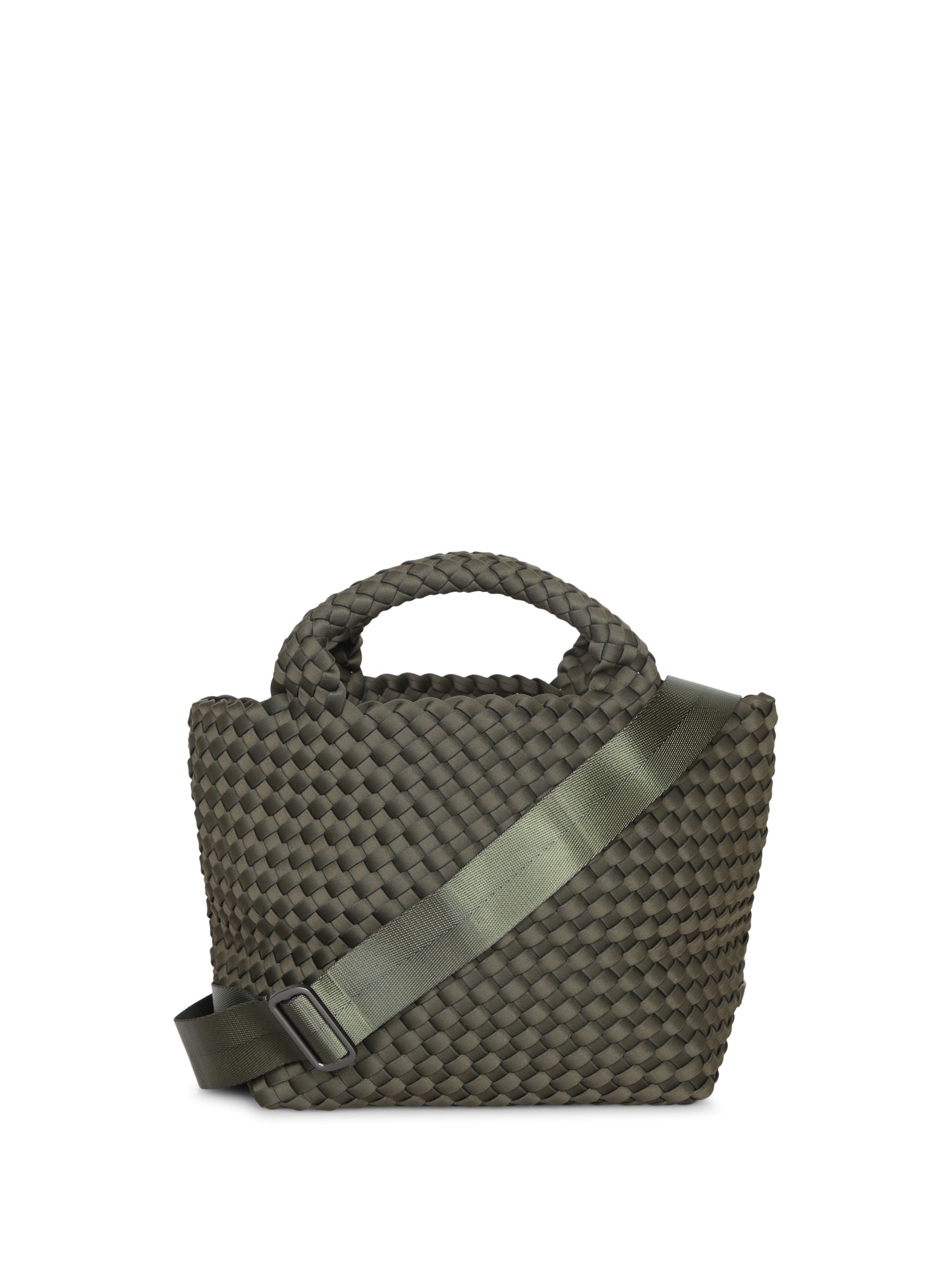 This stylish Naghedi bag, crafted with an exclusive olive woven fabric, combines practicality and modern style. Featuring an adjustable strap, it's perfect for a versatile daytime look.