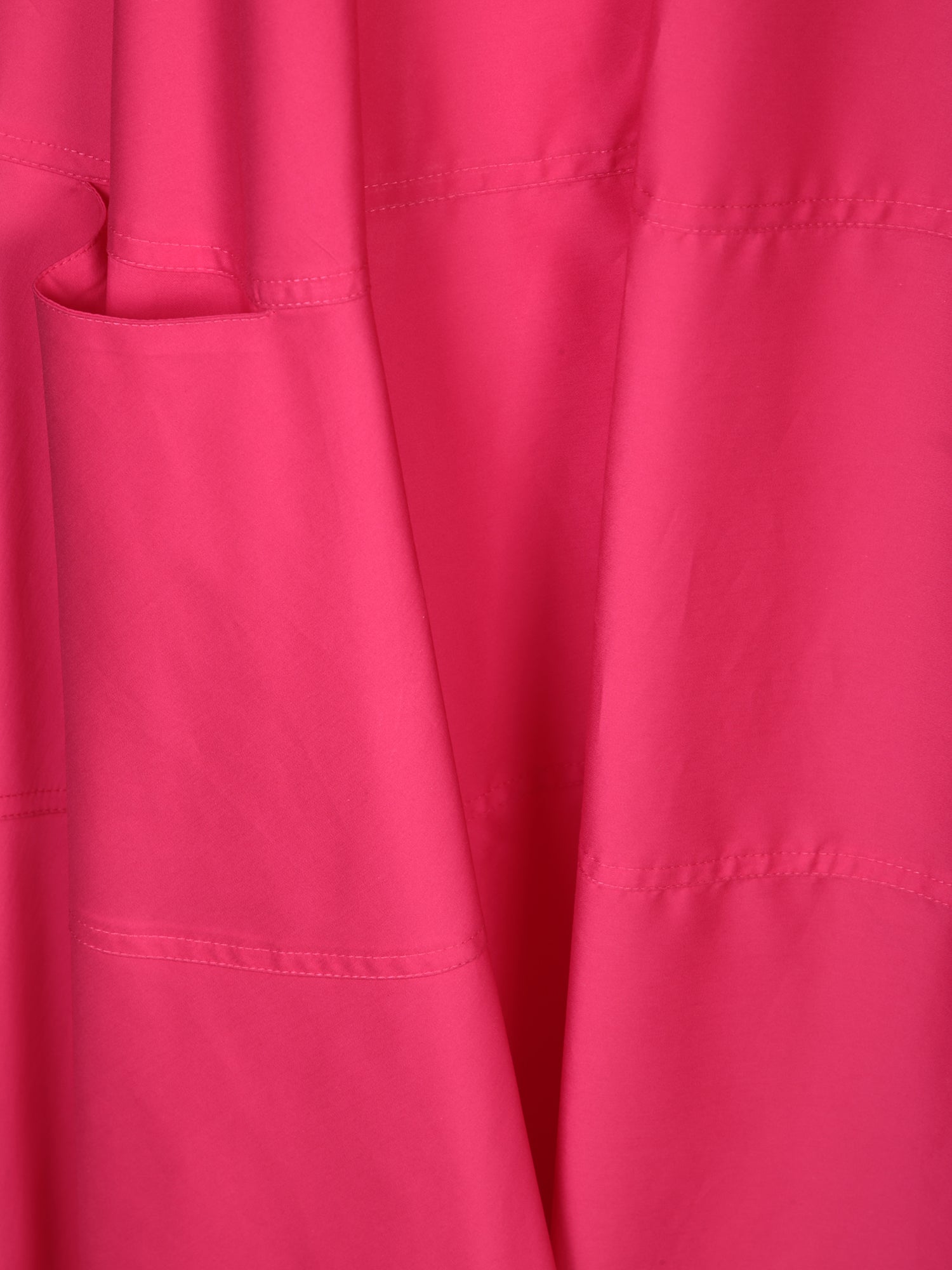 Short-sleeved poplin dress. Strawberry color. Crew neck. Flared cut with pleats.