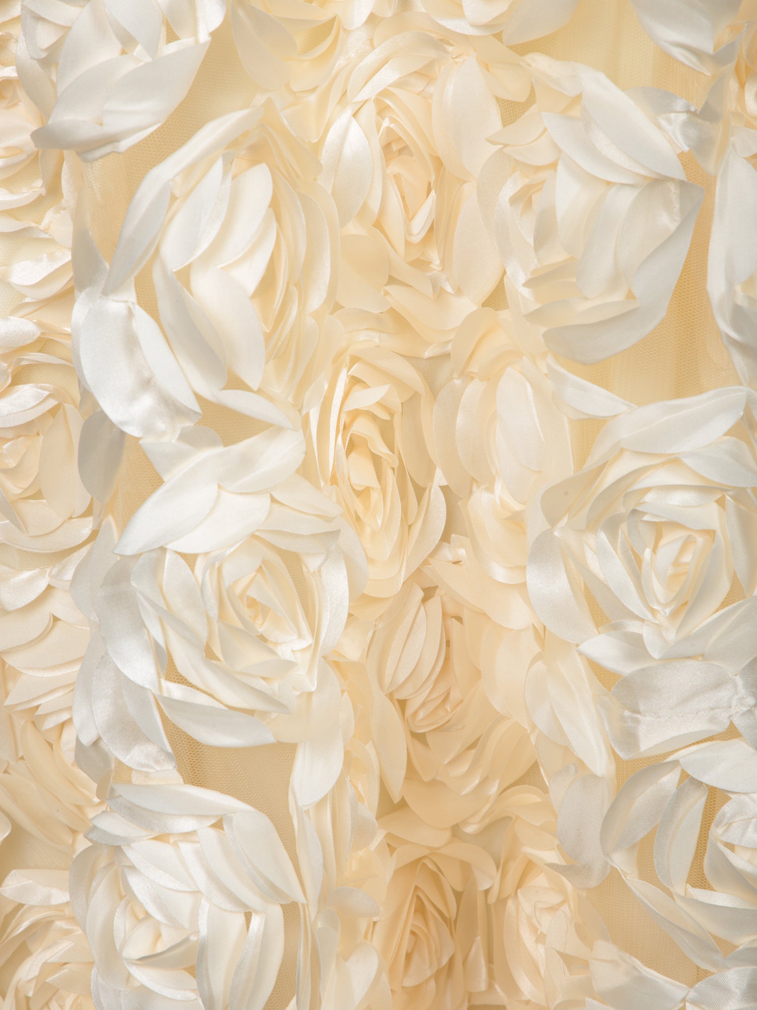 Long skirt crafted with fabric featuring three-dimensional floral appliqués. Perfect for special occasions.
