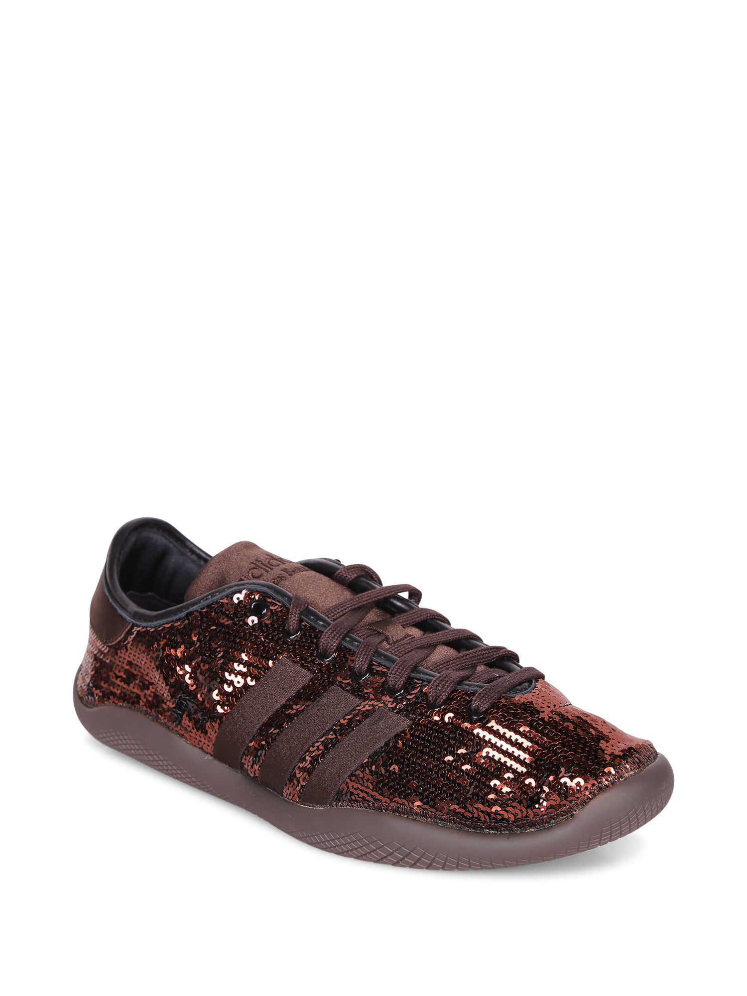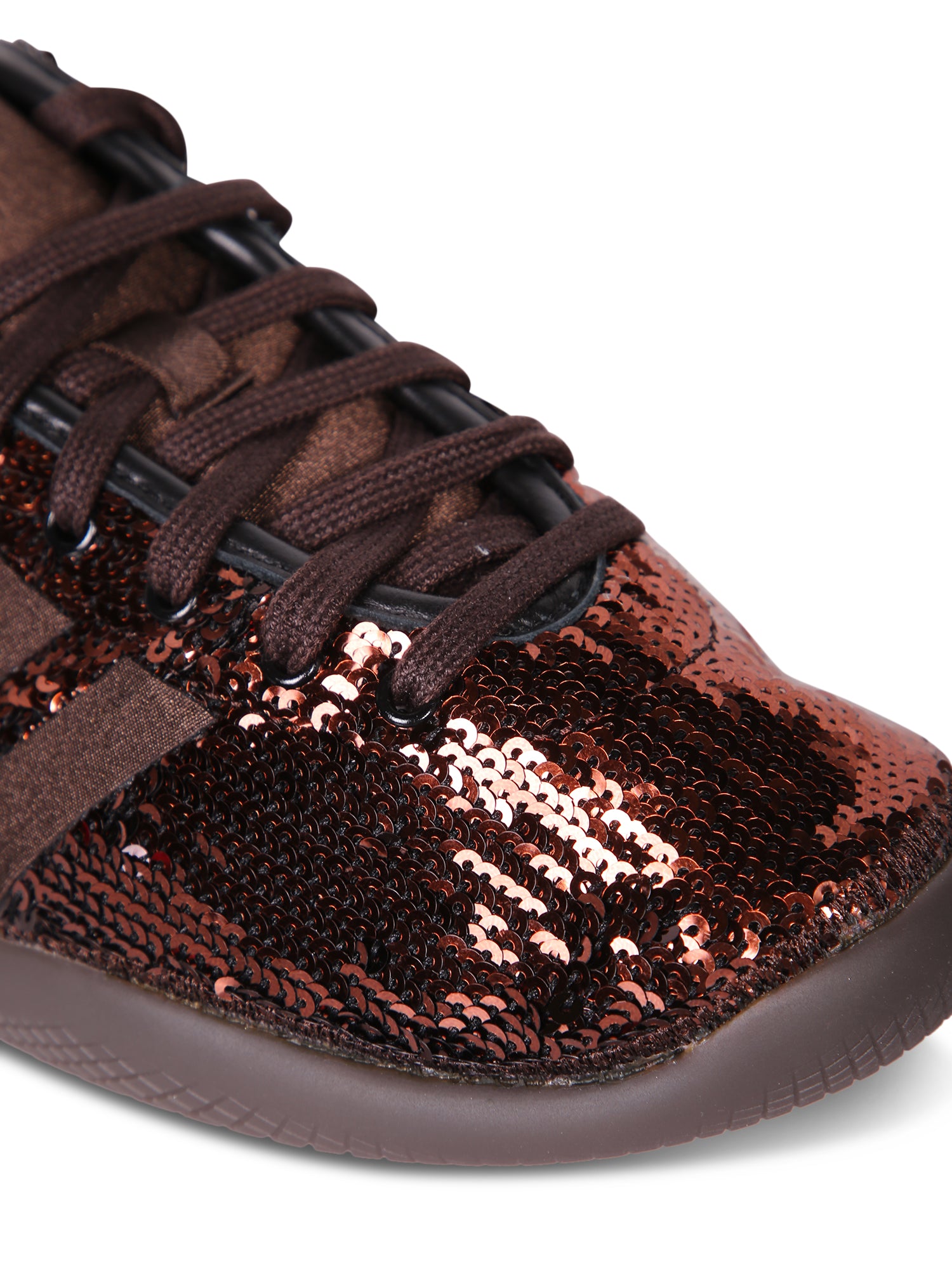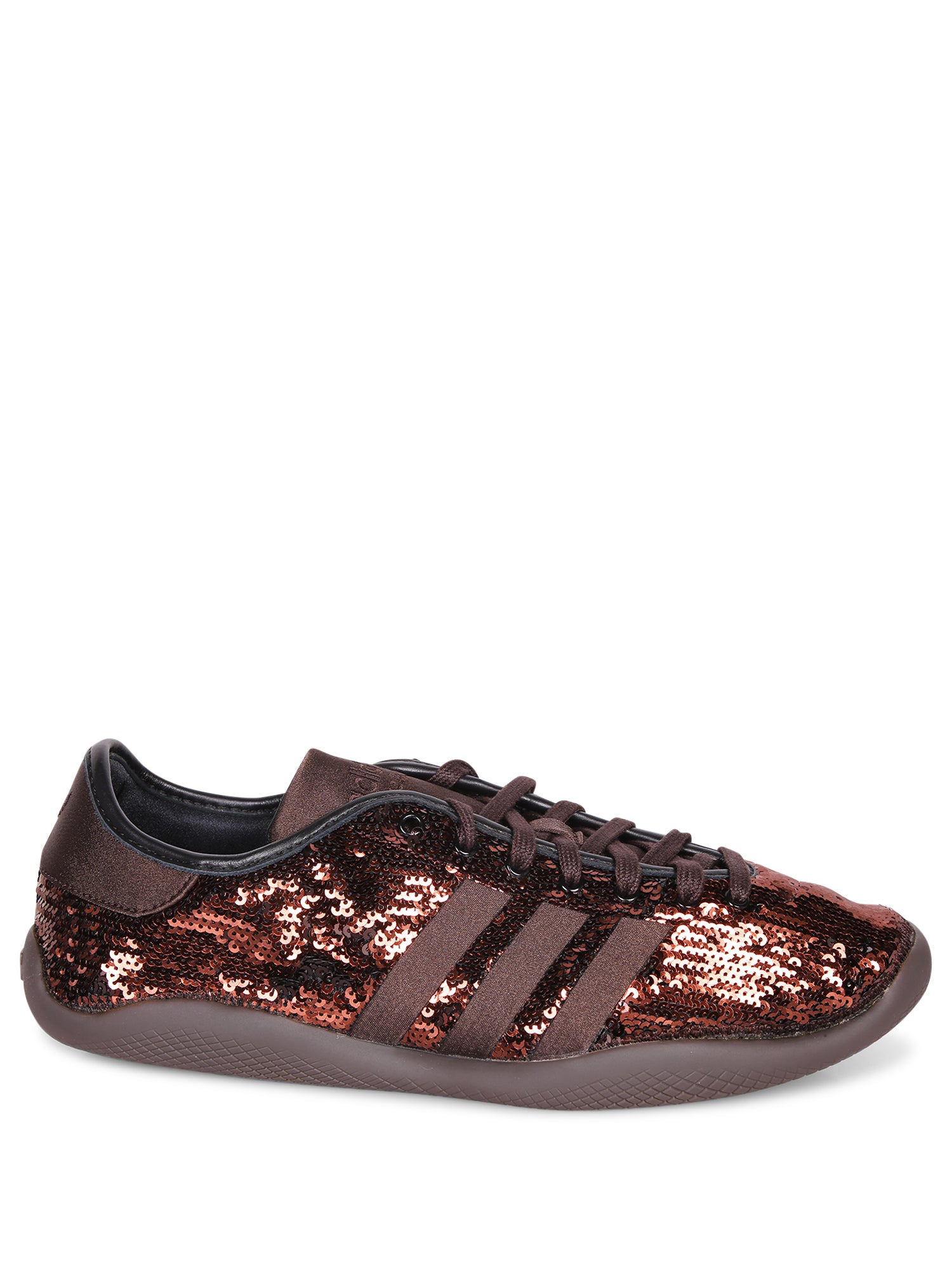 Sparkling sequin upper. Iconic stripe pattern. Non-slip rubber sole.