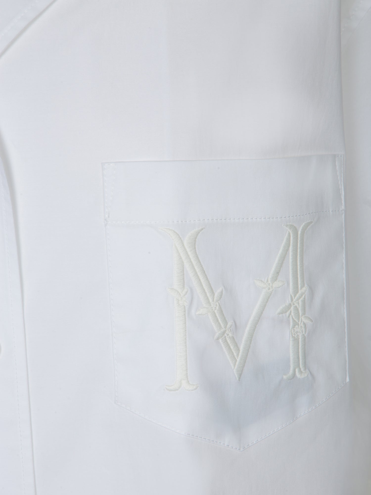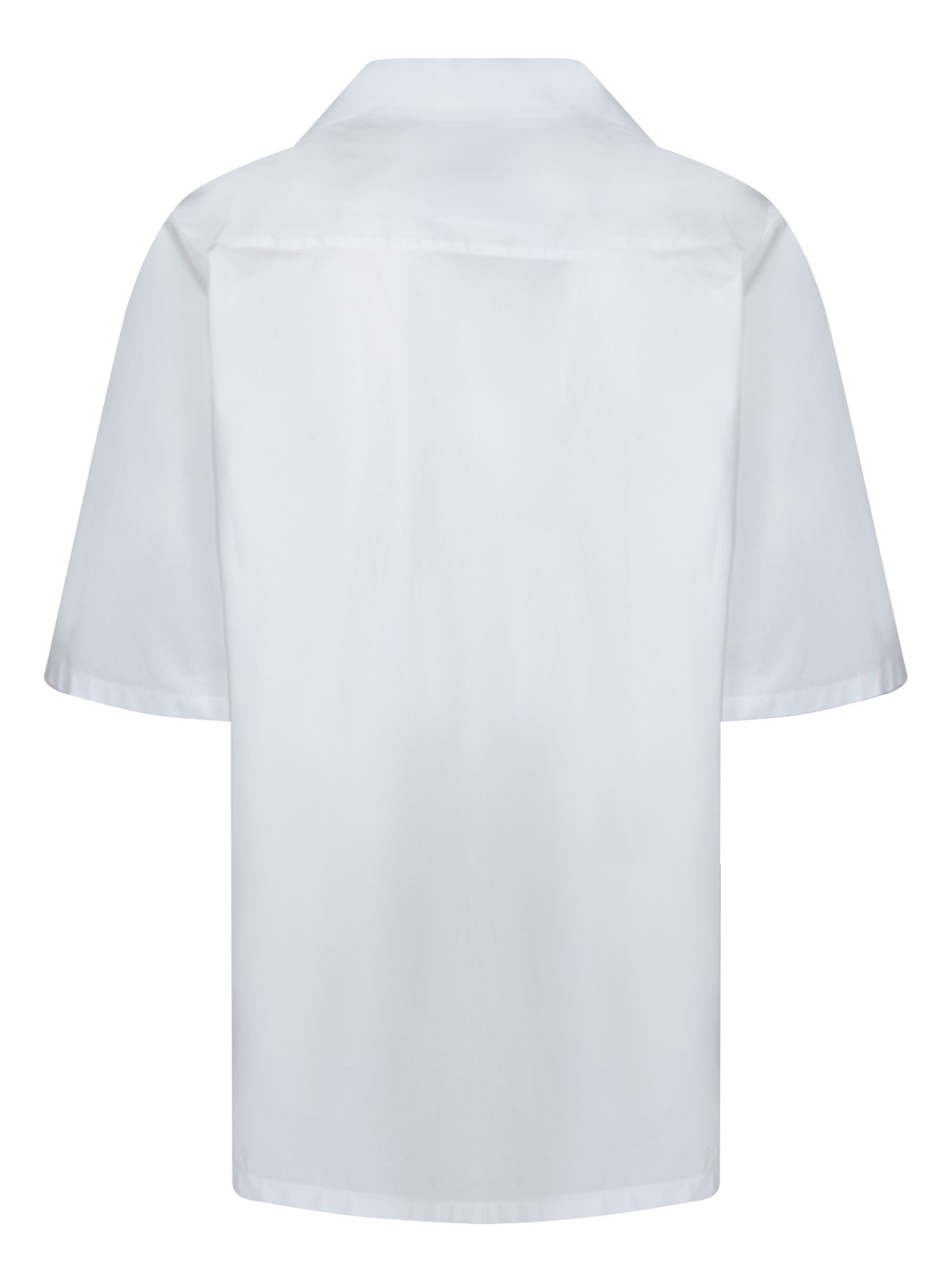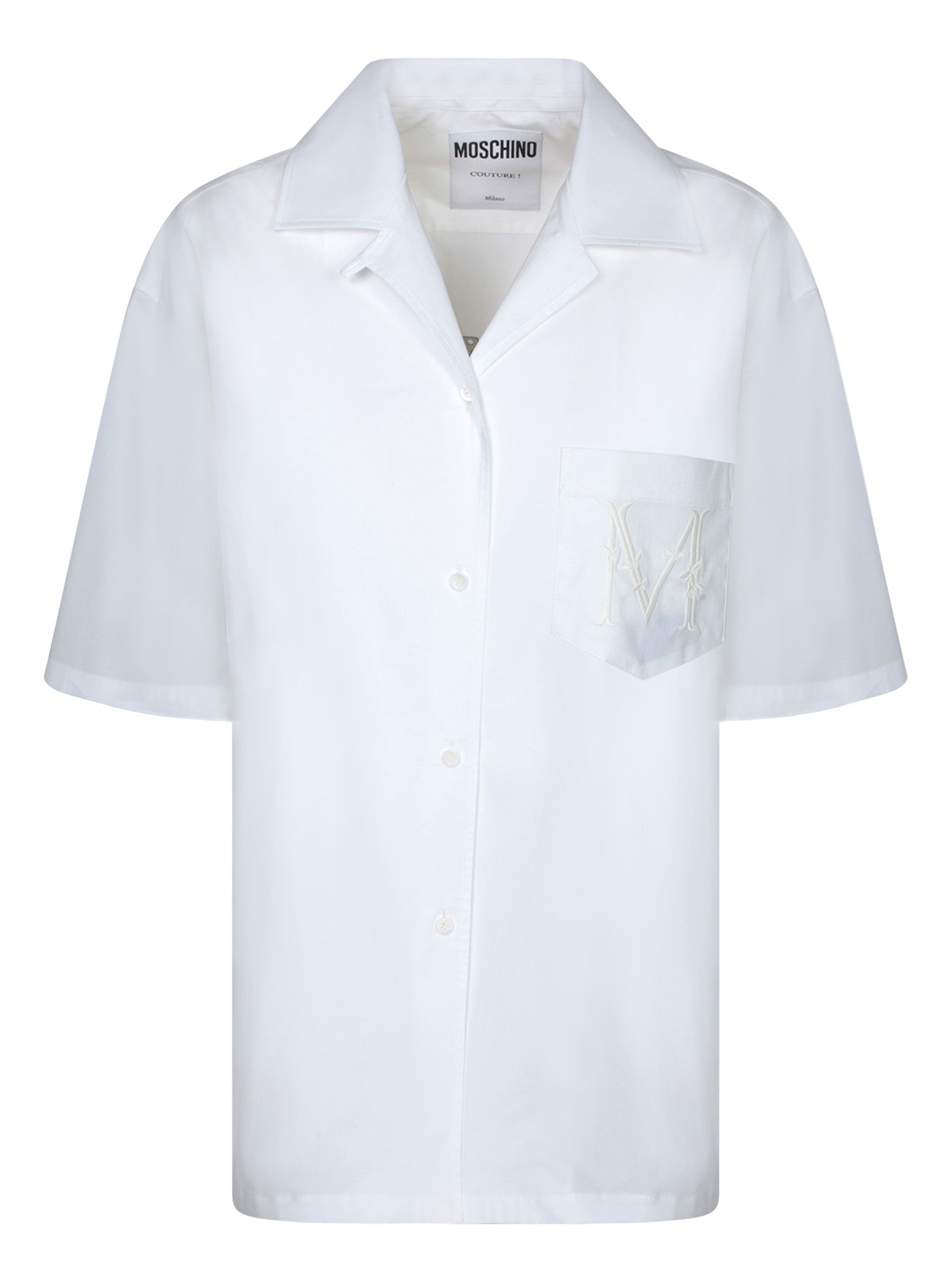 This Moschino white shirt in cotton poplin offers a crisp and clean appearance. Featuring a subtly embroidered logo on the pocket, this shirt combines style and practicality perfect for any occasion.