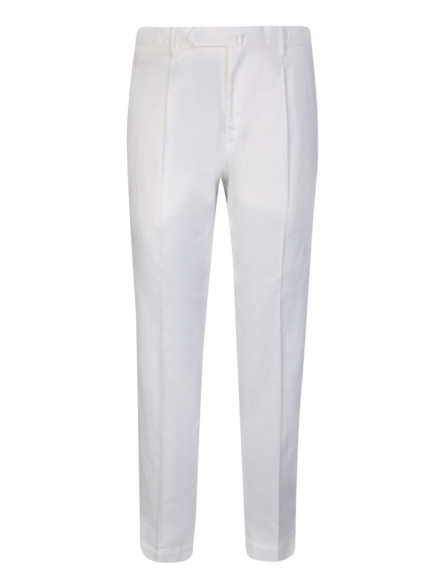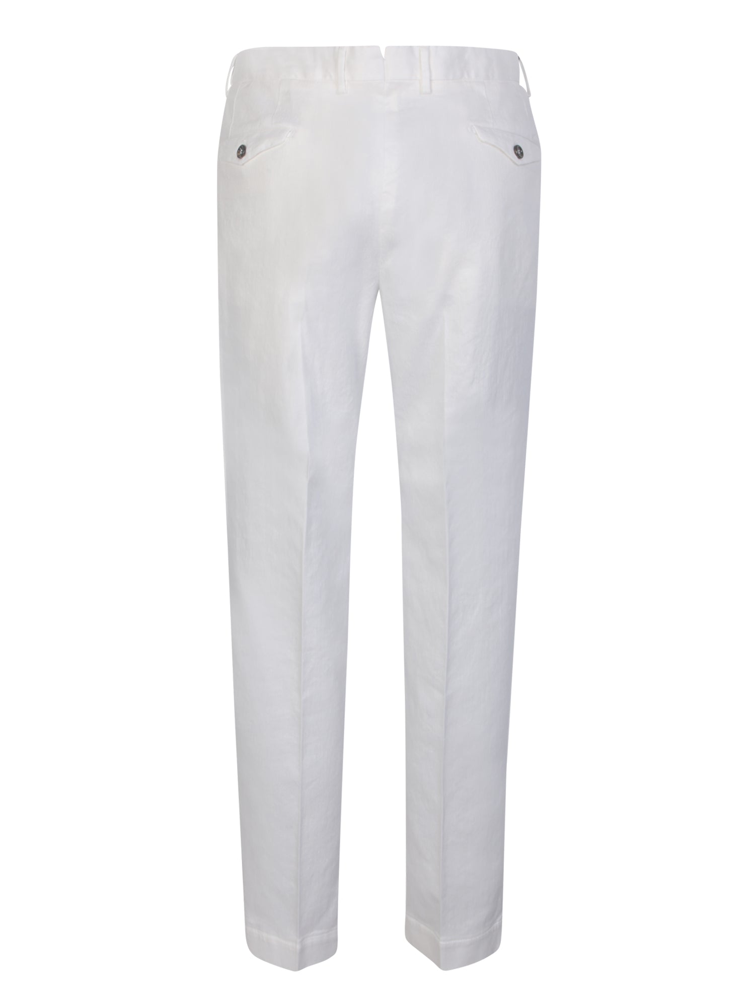 White linen-blend trousers by Dell'Oglio. Passe-partout garment par excellence, perfect to give an impeccable touch to the look.