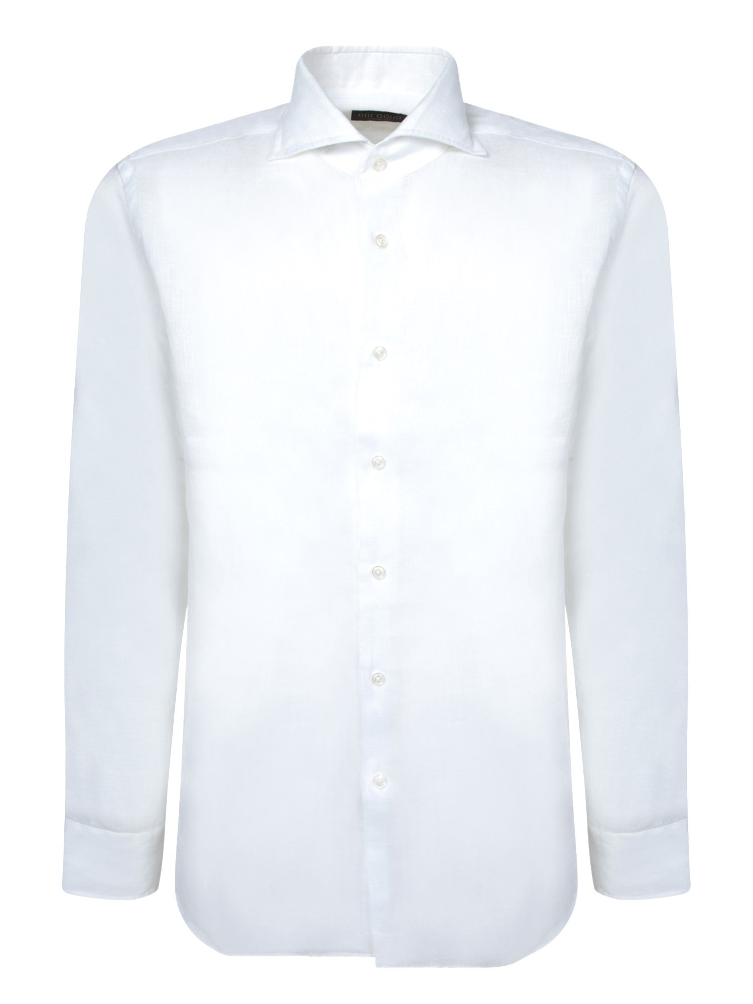 Elegant white linen shirt by Dell'Oglio, featuring a sophisticated Italian collar and a button closure that provides a clean and classic look.