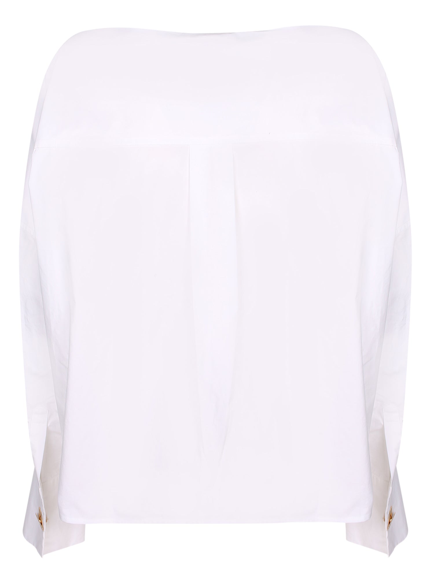 Crafted in lightweight poplin. Original design with pleats. Golden metal details.