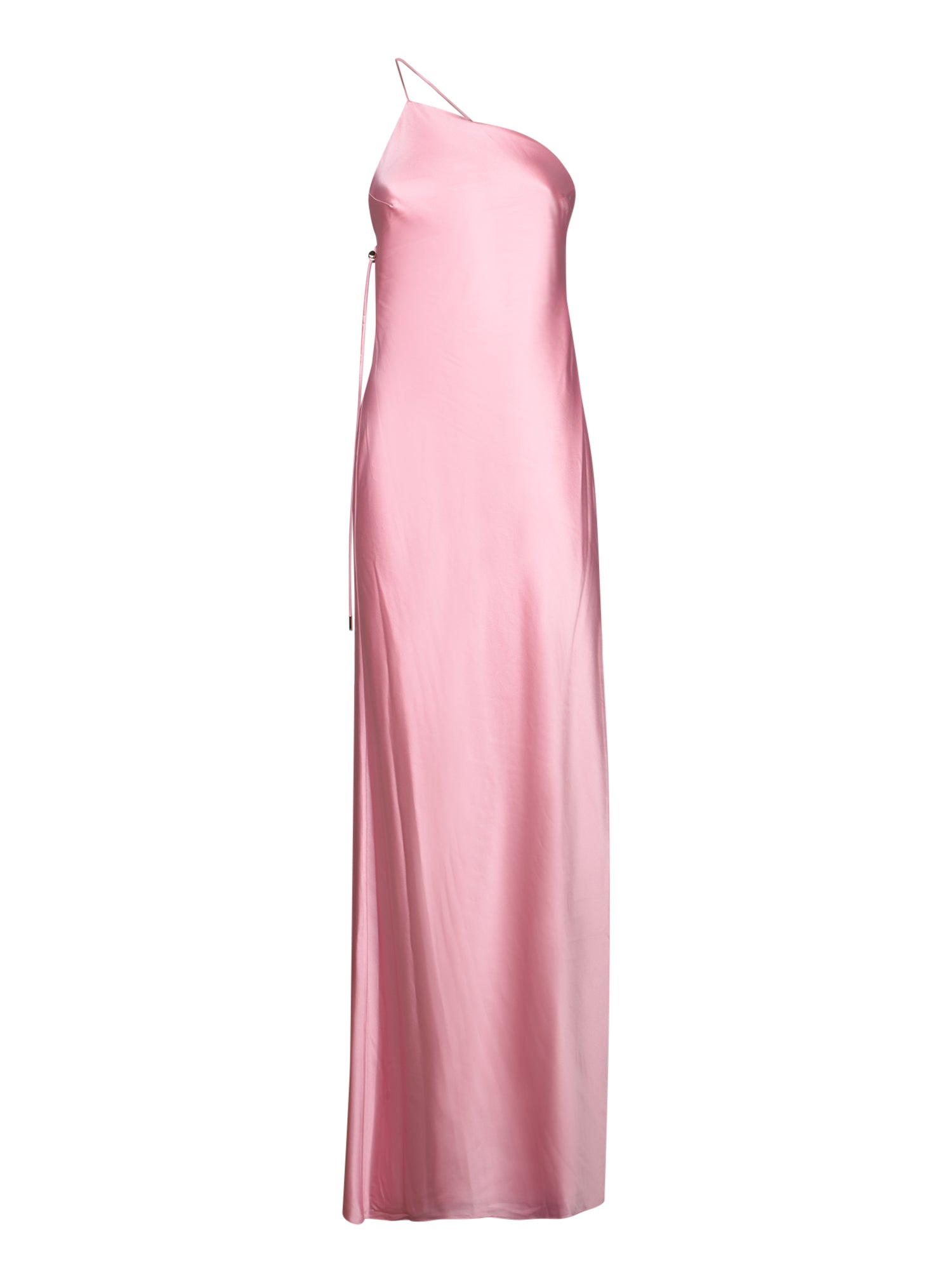 Long one-shoulder dress. Hidden side zipper. Smooth silk fabric.