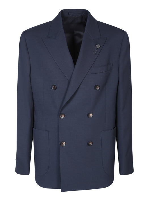 Double-breasted blue jacket