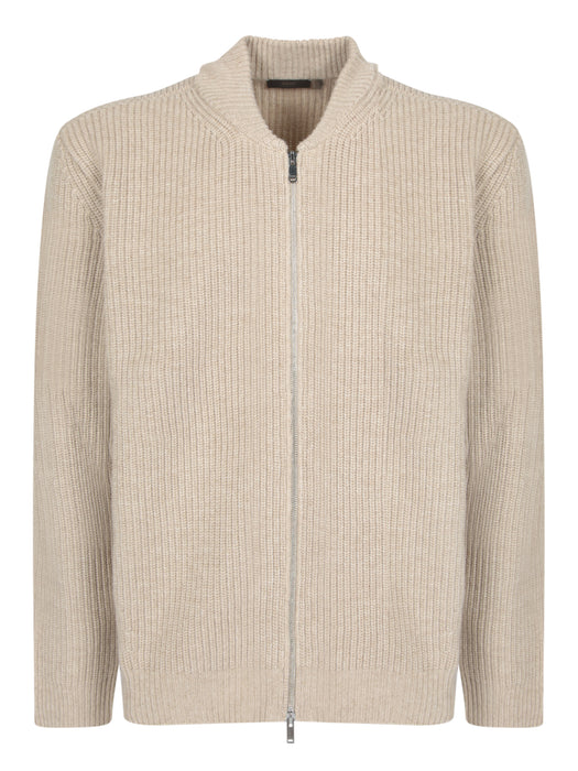 Natural Knit Zip Bomber Beige