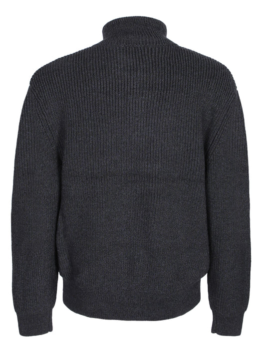 Black Wool Zip Cardigan with Leather Details