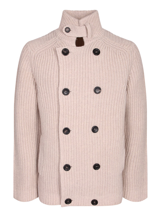 Double Breasted Natural Wool Cardigan in Beige