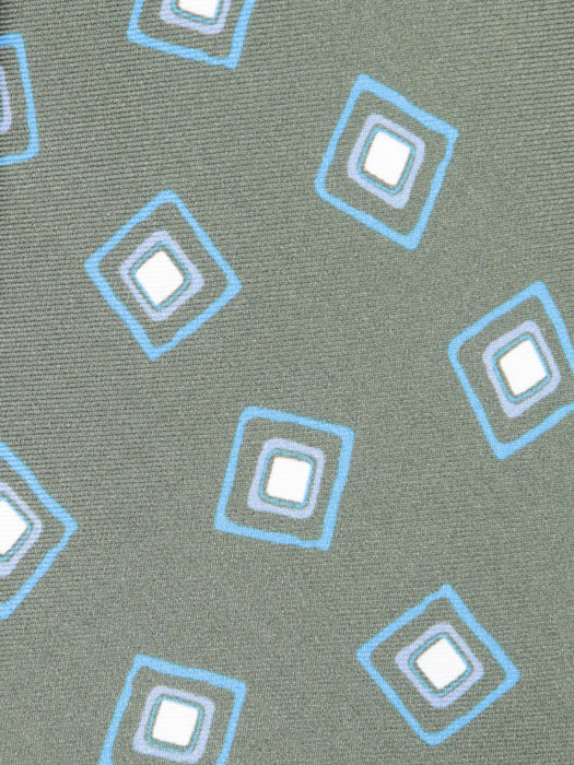 Green Silk Tie with Geometric Pattern