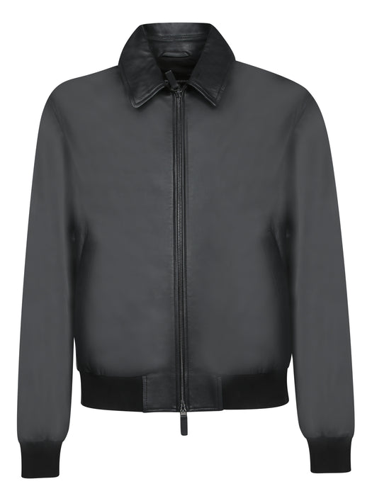 Black Leather Blouson Jacket