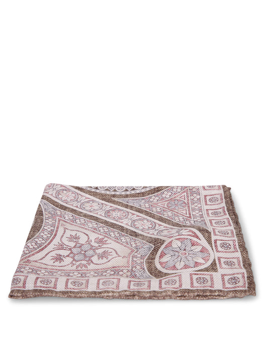 Double Pattern Silk Pocket Square Brown