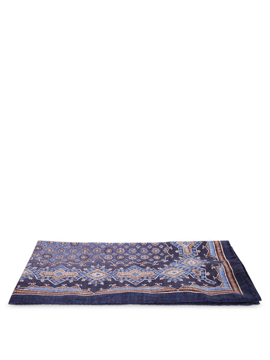 Double Paisley Pocket Square Beige/Navy
