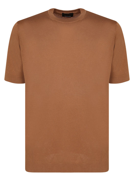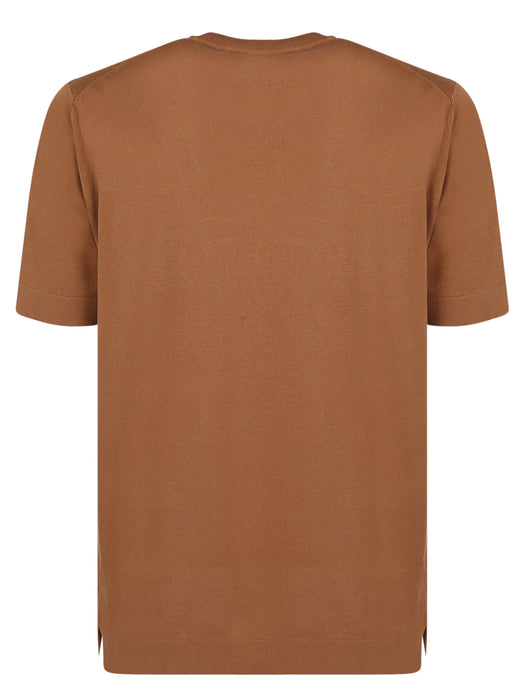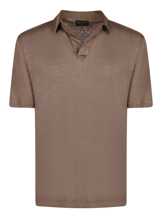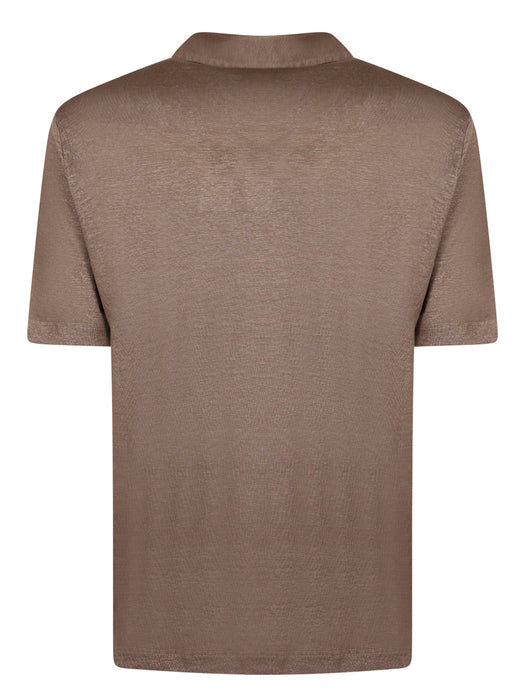 Brown linen short-sleeve polo