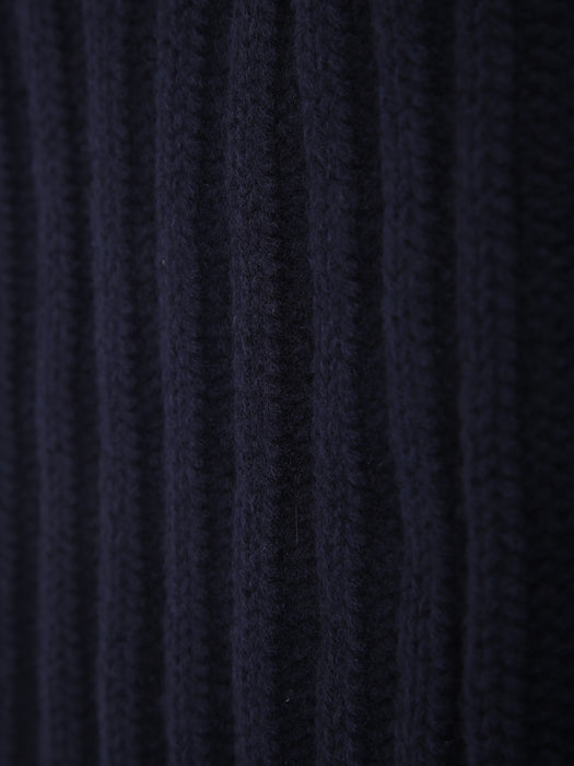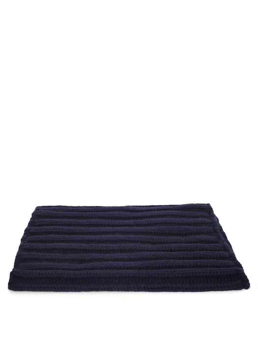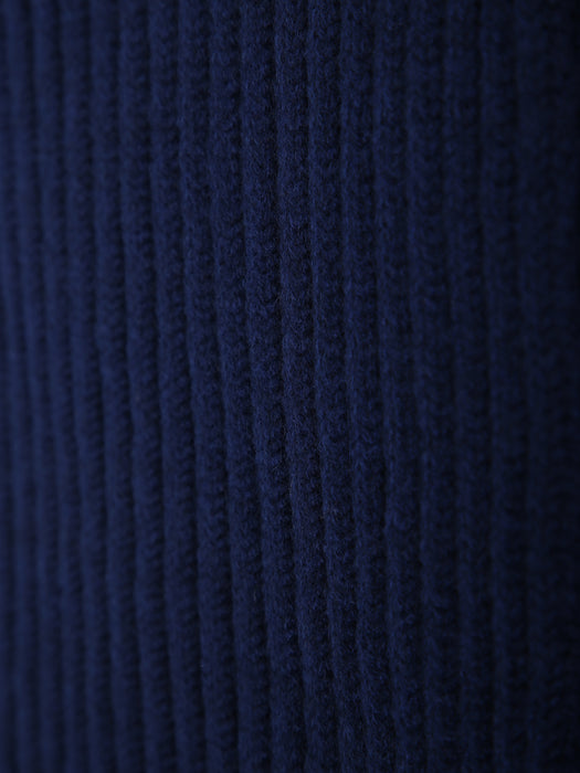 Rib Knit Wool Scarf in Navy