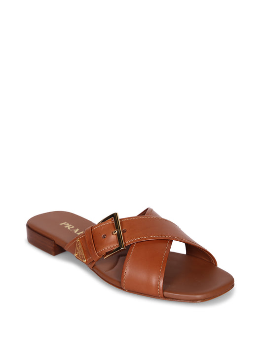 Romy Slide Leather Sandals Brown