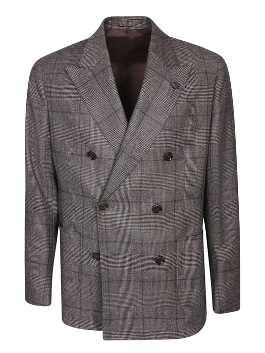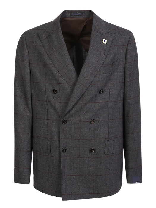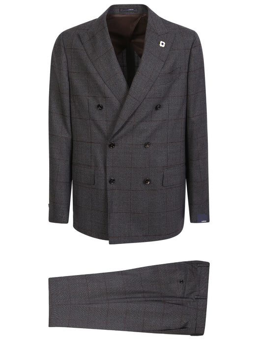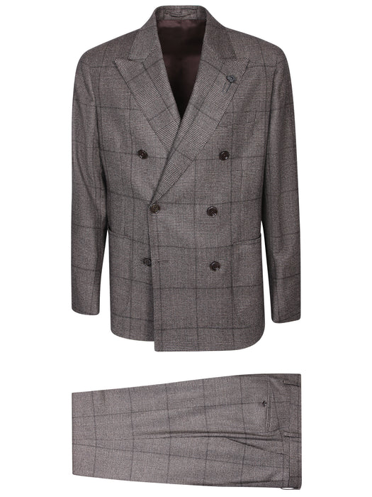 Check pattern double-breasted suit